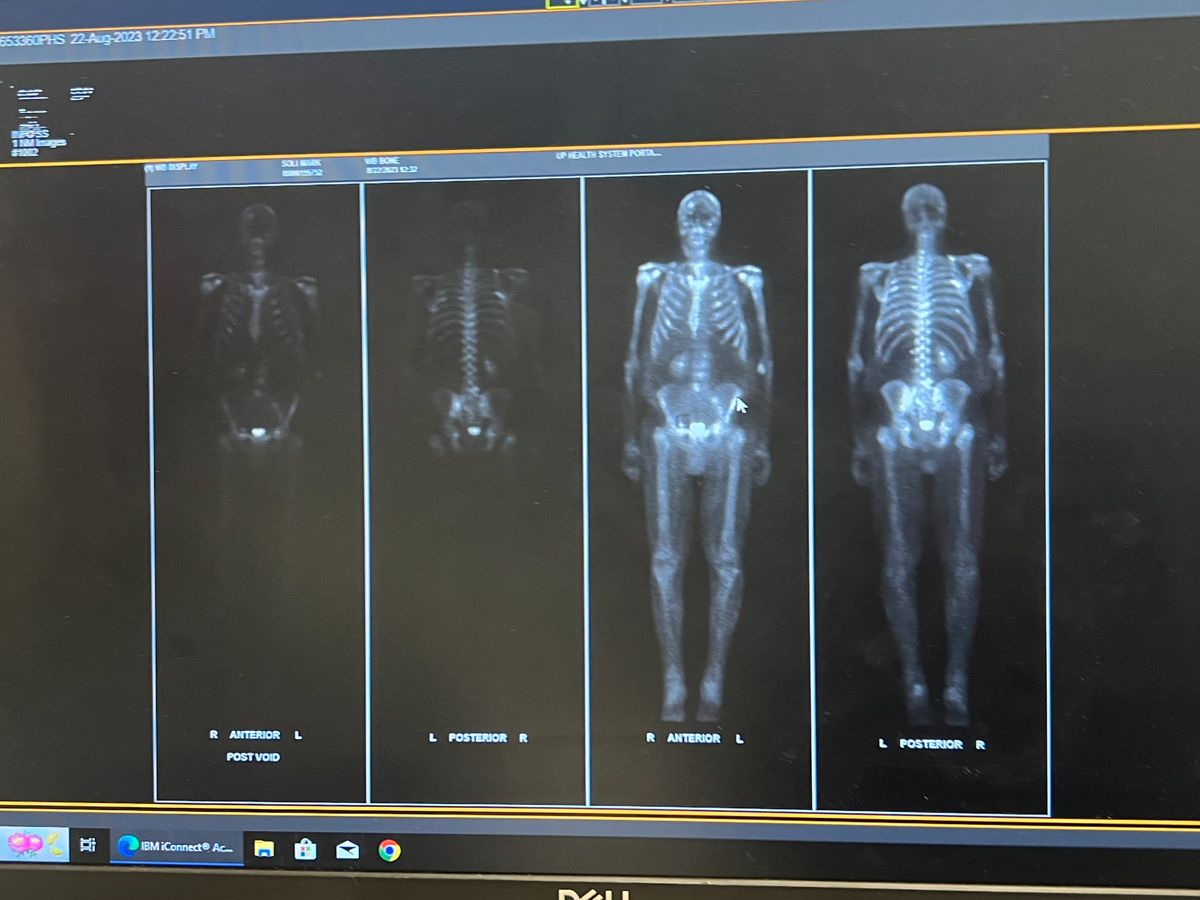 As many of you know, my father, Mark Soli, was diagnosed with Stage 4 Metastatic Prostate Cancer in June of 2023. This means that he has cancer that has spread throughout his bones and lymph nodes and it is incurable. At the time of diagnosis, he was not strong enough for chemo. He lost over 50 pounds in two short months and was very weak. He's been in a great deal of pain. He has had radiation to treat the worst spots to try to alleviate some of the pain, but it's continuing to spread and eat away at his skeleton. He has now gained 7 pounds back and is eating better, so they want to try chemotherapy. He will begin chemo treatments on November 15th, in hopes that it slows the spread and alleviates some more of the pain. All they can do at this point is make him as comfortable as they can. In the bone scan pictured, all of the bright spots are cancer. This scan was from August and it has only gotten worse since.