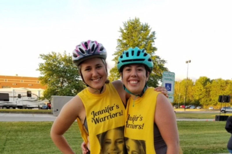 It started like every other MS Bike Ride. Our team was the biggest yet! Everyone was excited to ride, and Jennifer's Warriors were ready to roll! You may have seen our yellow shirts there were 9 of us, but one of our teammates and a first time rider did not make it to the first rest stop. Half of our team waiting at the rest stop for four of the girls...where were they? We heard sirens....then received the phone call....Mary was hit by a car. As the first half of our team rode we saw a black car driving irratically and said "that guy better slow down"...well he didn't... and kept swerving from one side of the road to the other. He was on the wrong side of the road and another car had to avoid him by going into a ditch...the driver over corrected came back up onto the road and hit Mary....she was life flighted to Metro, and the man who caused the accident fled the scene...the police caught up with him. It was found that she sustained pelvic fractures, a fracture of her femur, tibia and fibia....Mary nearly lost her leg. If it wasn't for the team of medical personel that were riding behind her she may not be with us today....if one of the men that helped Mary is reading this please contact me as soon as you can.