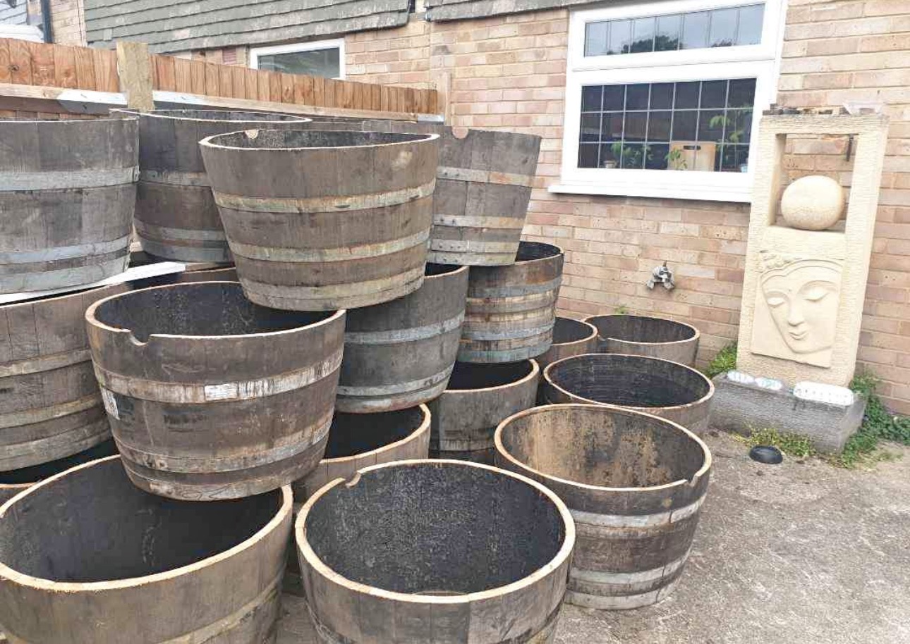 *Half whiskey barrels for planters
