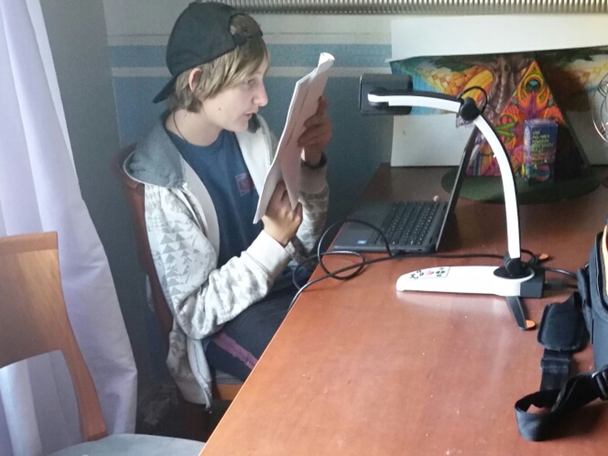 Mason is currently beginning his first year of high school.  Unfortunately, school is under Corona virus restrictions, so Mason cannot  necessarily sit as close as he would like to the front of the classroom.  His teachers are all very understanding and want to help as much as possible.  However, Mason is just one student out of many, and they are already overwhelmed with work.  The state of California provides him with a worker from Vision Services.  They try to provide him with helpful technology in the classroom setting.  However, for the past few years, the devices have been outdated, broken, bulky or take 10 minutes to set up.  Some have required an outlet, which is not always easy to find in a classroom.  Mostly though, they just aren't specific enough to Mason's needs to be of real assistance.  Plus, these devices do not belong to him.  They are borrowed, and at the end of every school year, must be given back.