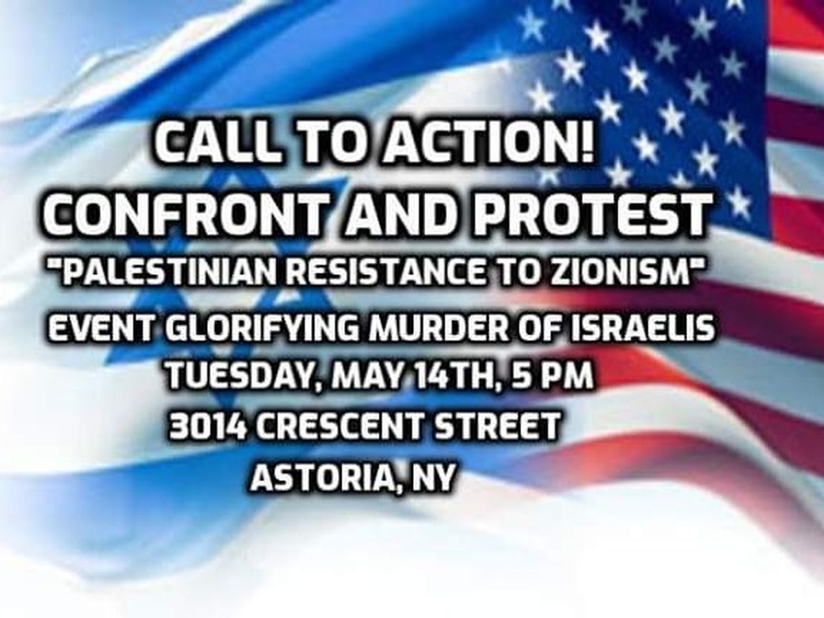 On Tuesday evening, May 14, at 6pm, there is an event that is "Celebrating Palestinian Resistance" happening in our neighborhood of Astoria, Queens, that we, the small Jewish community of Astoria, are galvanizing the NY Jewish and pro-Israel community to join us in confronting. We were told by the organizer, Caleb Dejong, who is a member of the board of the church, that our "opinions won't be welcome at this event", and that "saying controversial things about Palestine won't be tolerated"