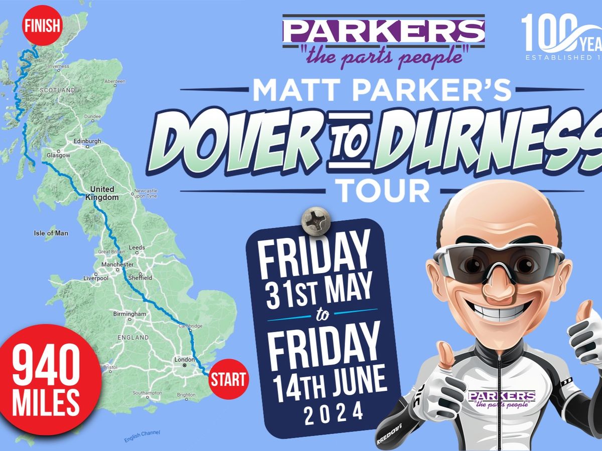 Hi, I'm Matt Parker and to celebrate Parkers the Parts People's 100 year anniversary, I've decided to cycle 940 miles from Dover to Durness in just 14 days!