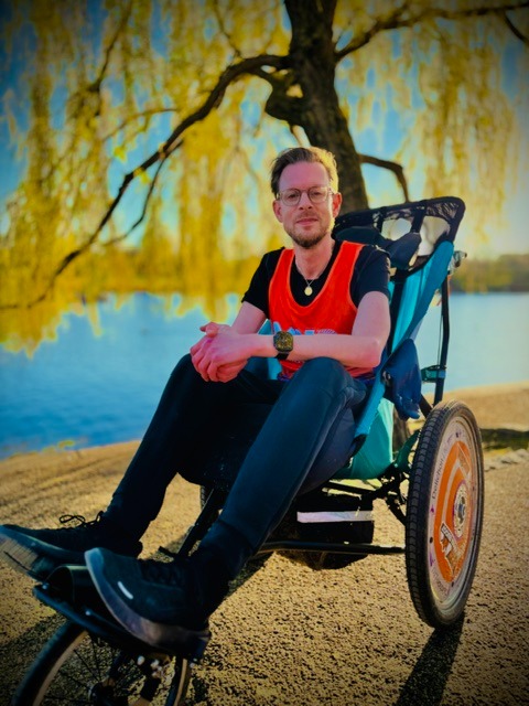 Matt won't be running. He'll be pushed in his wheelchair by the family who love him, carried quite literally by his brother Tomos, sister Natalie, cousin Stewart and, born to his dad and step mum, Matt's other brother ... also called Tom! All four of Matt's pushers hold him up every single day and in turn, he inspires them every day. That image says everything you need to know about our lovely Matt, the life he has built and the person he is.