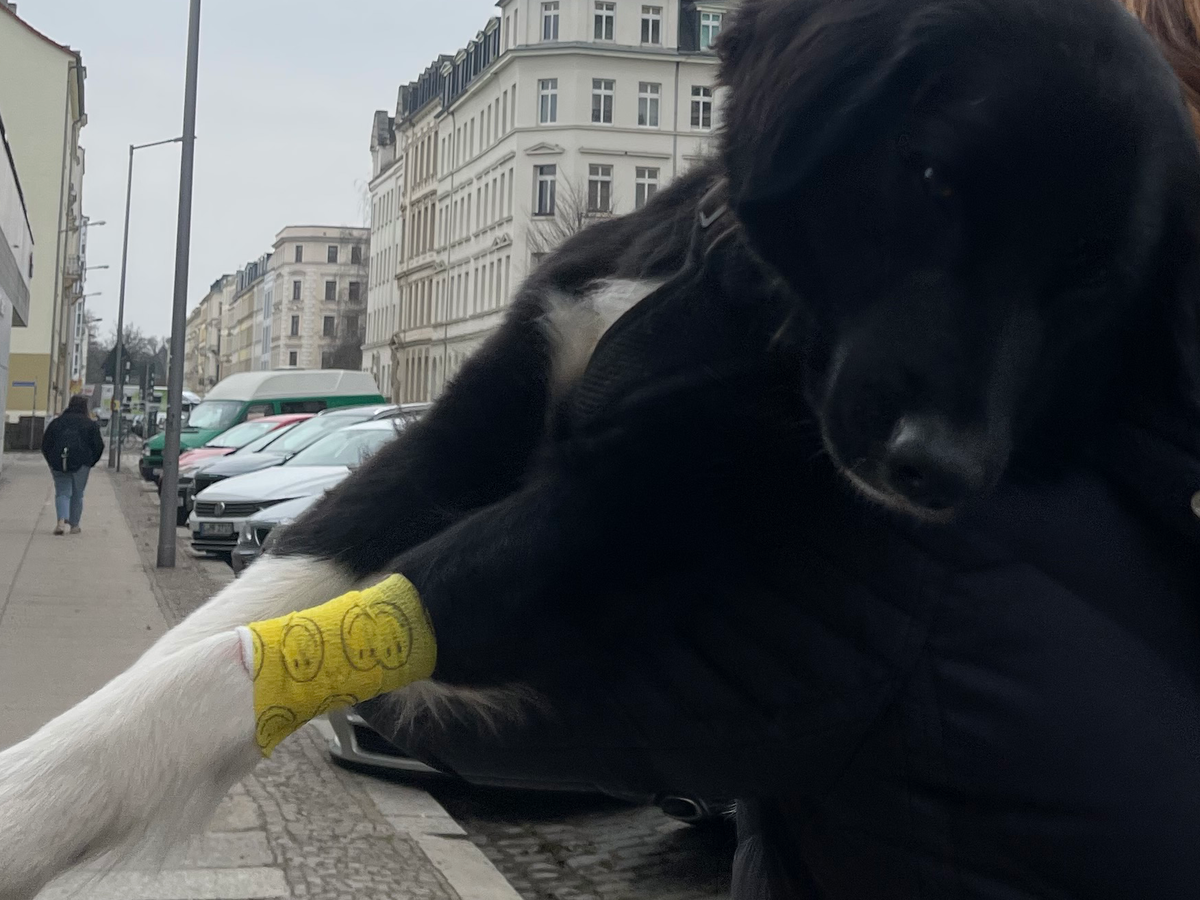 Gestern hat sie sich beim Spielen im Wald zusätzlich verletzt und kann seither kaum noch laufen. Sie zieht ihr Hinterbein hinter sich her und hat scheinbar große Schmerzen.