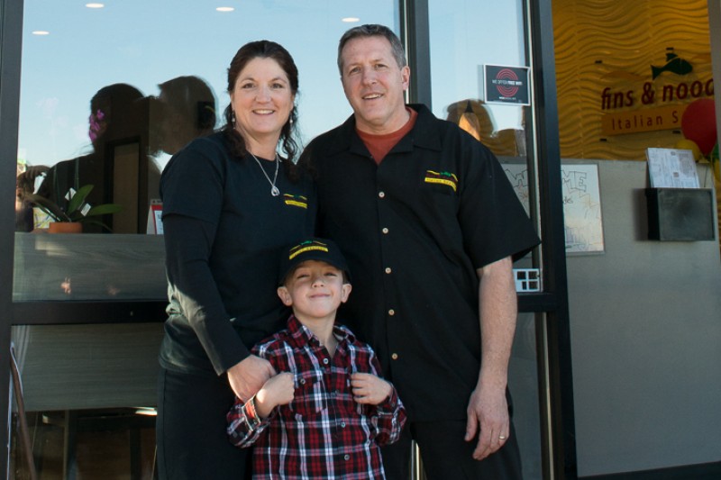 Hi, we are the Sansone family. That's my wife, Erica, our son, Adam and me, Robert. We have successful operated Sansone's Bistro, in Greenwood Village CO, for the past twelve years. About a year ago, we joined the current restaurant trend opening a fast casual restaurant called fins & noodles Italian Seafood. We wanted to design a concept that educated people on the importance of seafood in their diet while respecting our oceans, and promoting overall health. By combining the renowned health benefits of both seafood and the Mediterranean diet we have created a high quality, healthy, fast-casual food option.
