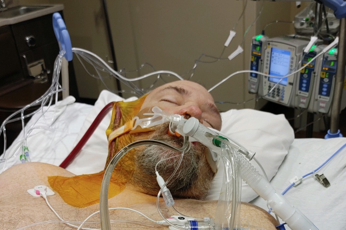 Things declined rapidly. His first treatment was oxygen, then bi-pap, and he continued to decline. By January 2nd, he was being intubated. Marc isn’t super sentimental and he felt it was time to say his goodbyes to his family. He told his wife to tell everyone he loved them. He didn’t think he was going to make it. We weren’t sure either. Michelle was able to FaceTime her husband, mainly just sitting with him as even talking exhausted him. A few minutes later they came in to intubate him.