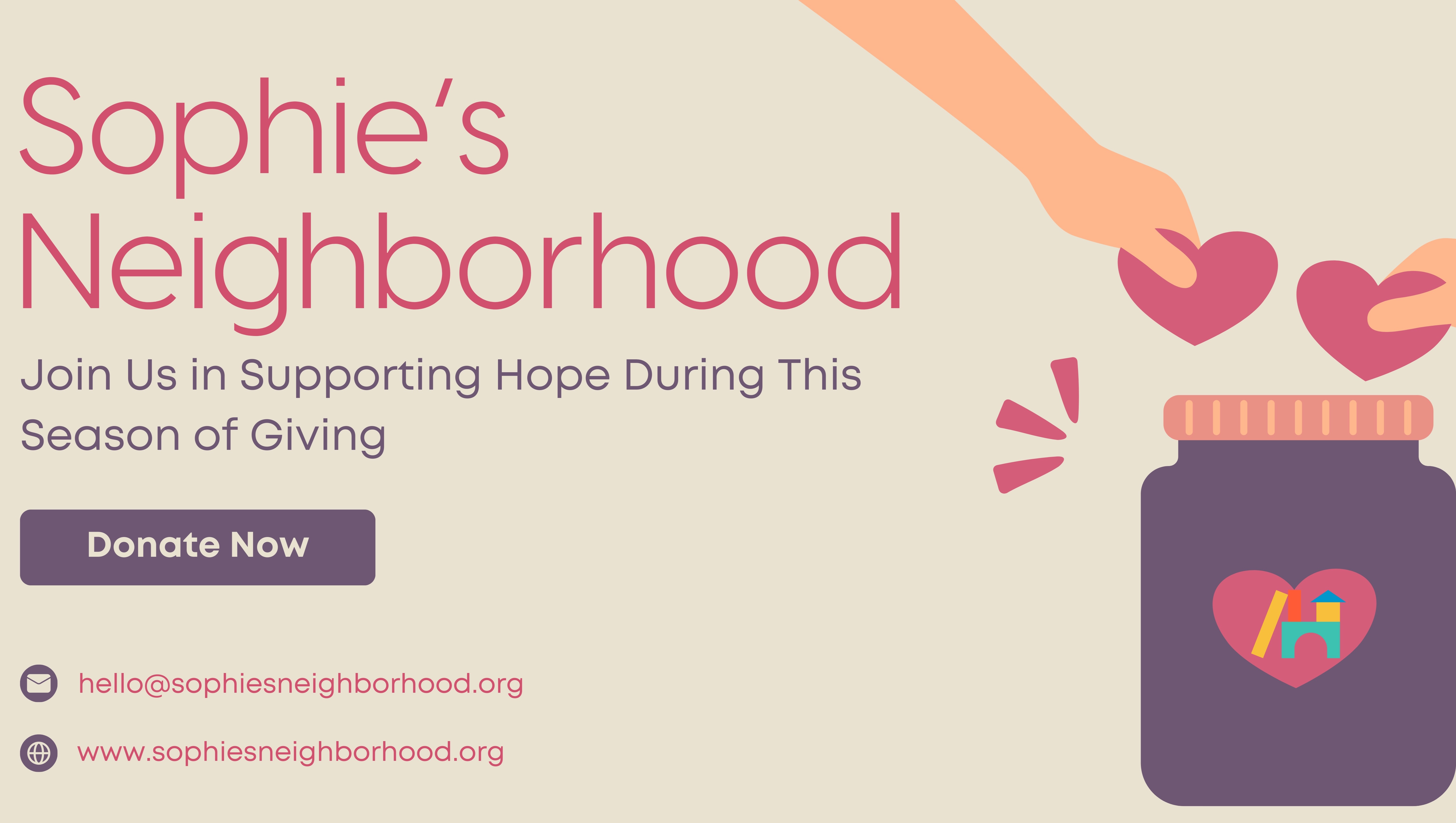 Please share this with everyone you know to help us meet this goal that will make a life changing impact. Any donation amount, small or large helps tremendously. To learn more about our grants and collaborations, visit: https://www.sophiesneighborhood.org/grants