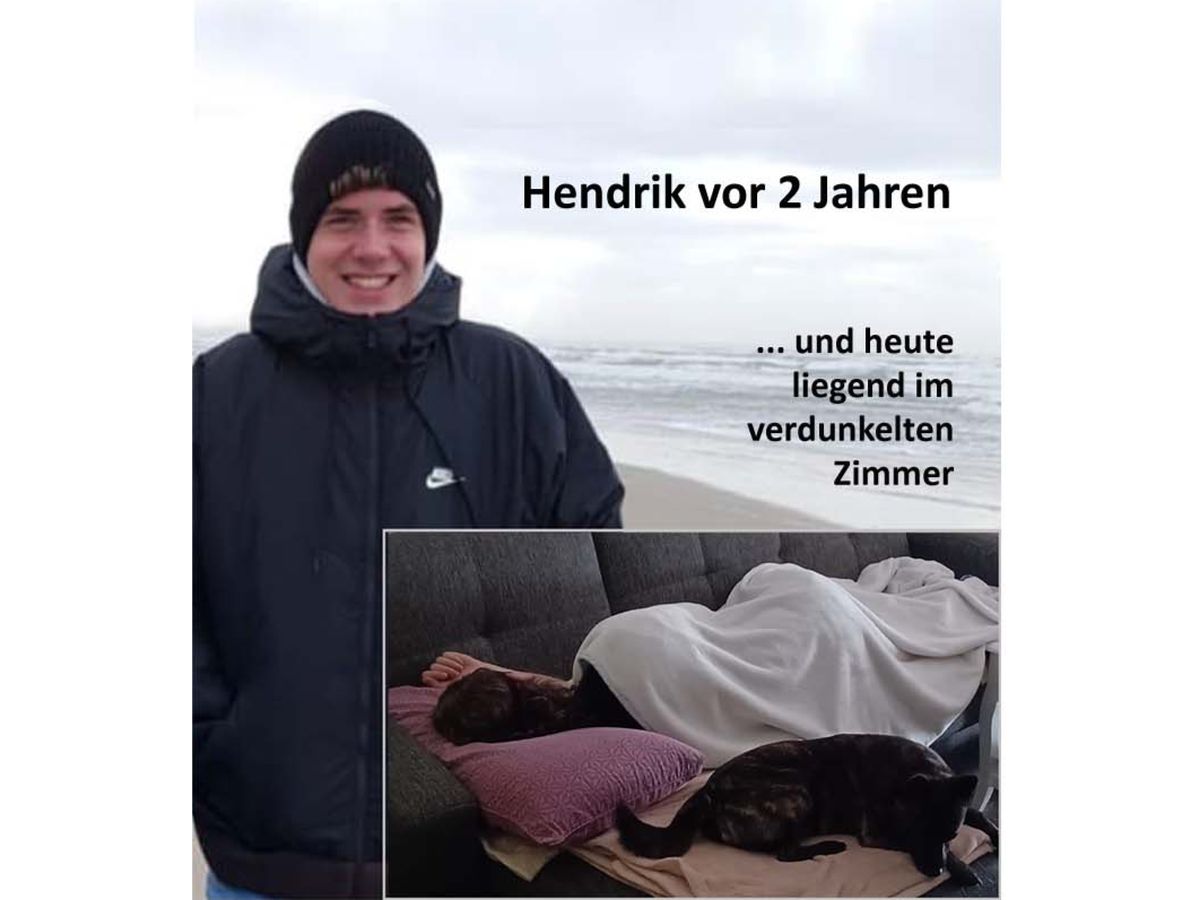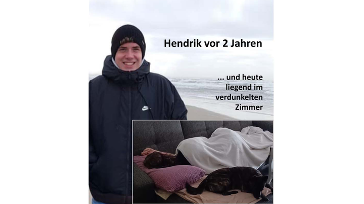Mein Sohn Hendrik ist 23 Jahre alt und schwerst an ME/CFS erkrankt. ME/CFS ist eine schwere neuroimmunologische Multisystemerkrankung. Hierdurch leidet Hendrik u. a. unter totaler körperlicher Schwäche und Erschöpfung, starken Schmerzen im ganzen Körper, Reizüberempfindlichkeit, Konzentrations- und Gedächtnisproblemen, Zittern, um nur einige Symptome zu benennen. Die kleinste Belastung - z.B. ein intensiveres Gespräch, kann zu einem Crash führen, so dass es Hendrik tagelang zusätzlich mit Migräne, Erbrechen, Zittern noch schlechter geht. Durch die Erkrankung kann Hendrik überhaupt nicht mehr am normalen Leben teilnehmen, da er nur sehr selten im Monat für ganz kurze Zeit das Haus verlassen kann. Diese Krankheit macht unfassbar einsam.
