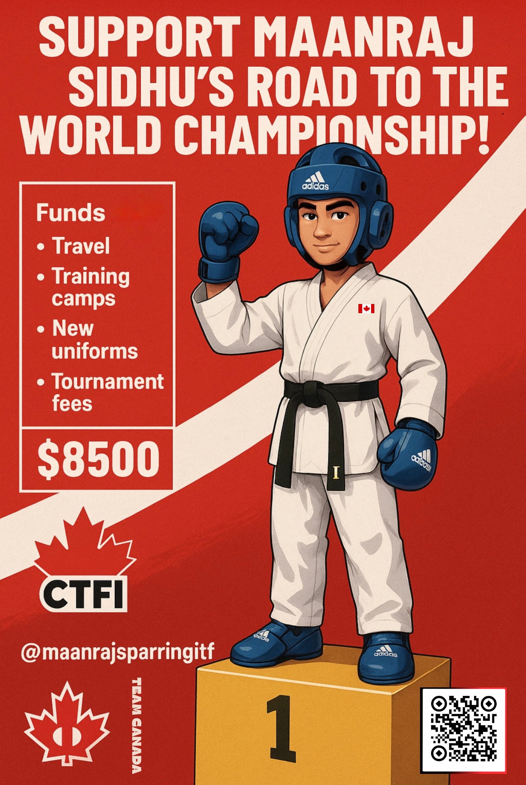 Hi my name is Maanraj Sidhu, I am 13 years old and I've been selected to represent Team Canada at the 2025 ITF World Taekwondo Championships in Croatia.