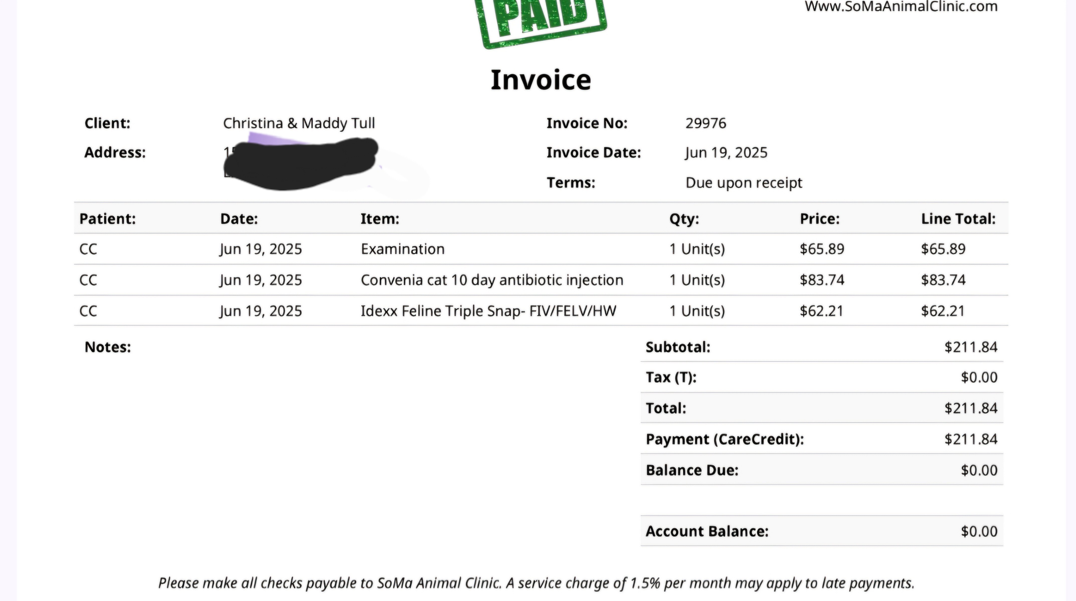 We recently took CC to our vet since her kittens are now weaned. She is FIV free, but she is in dire need of medical care. Our vet gave her some antibiotics. This cost us $211.