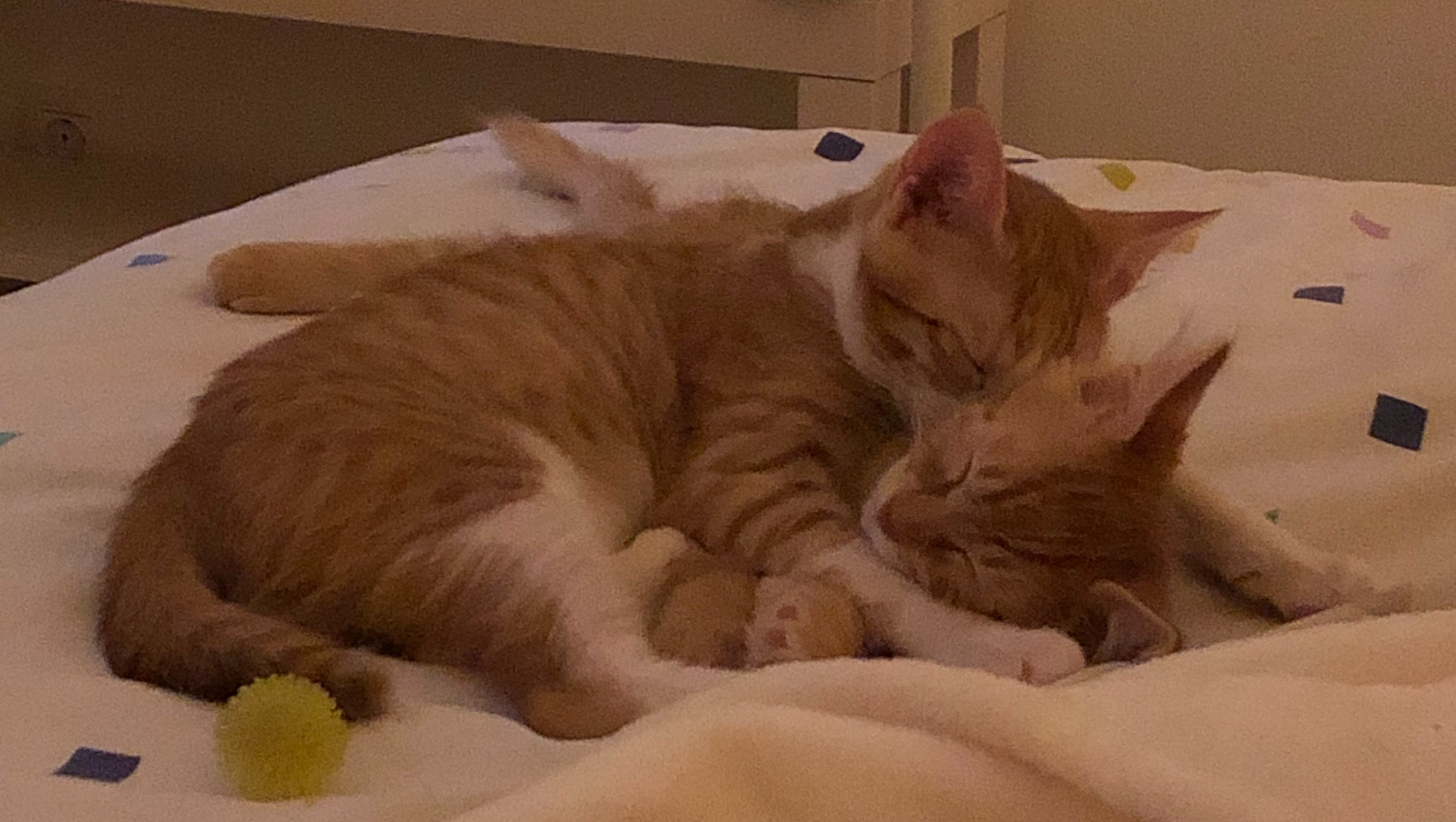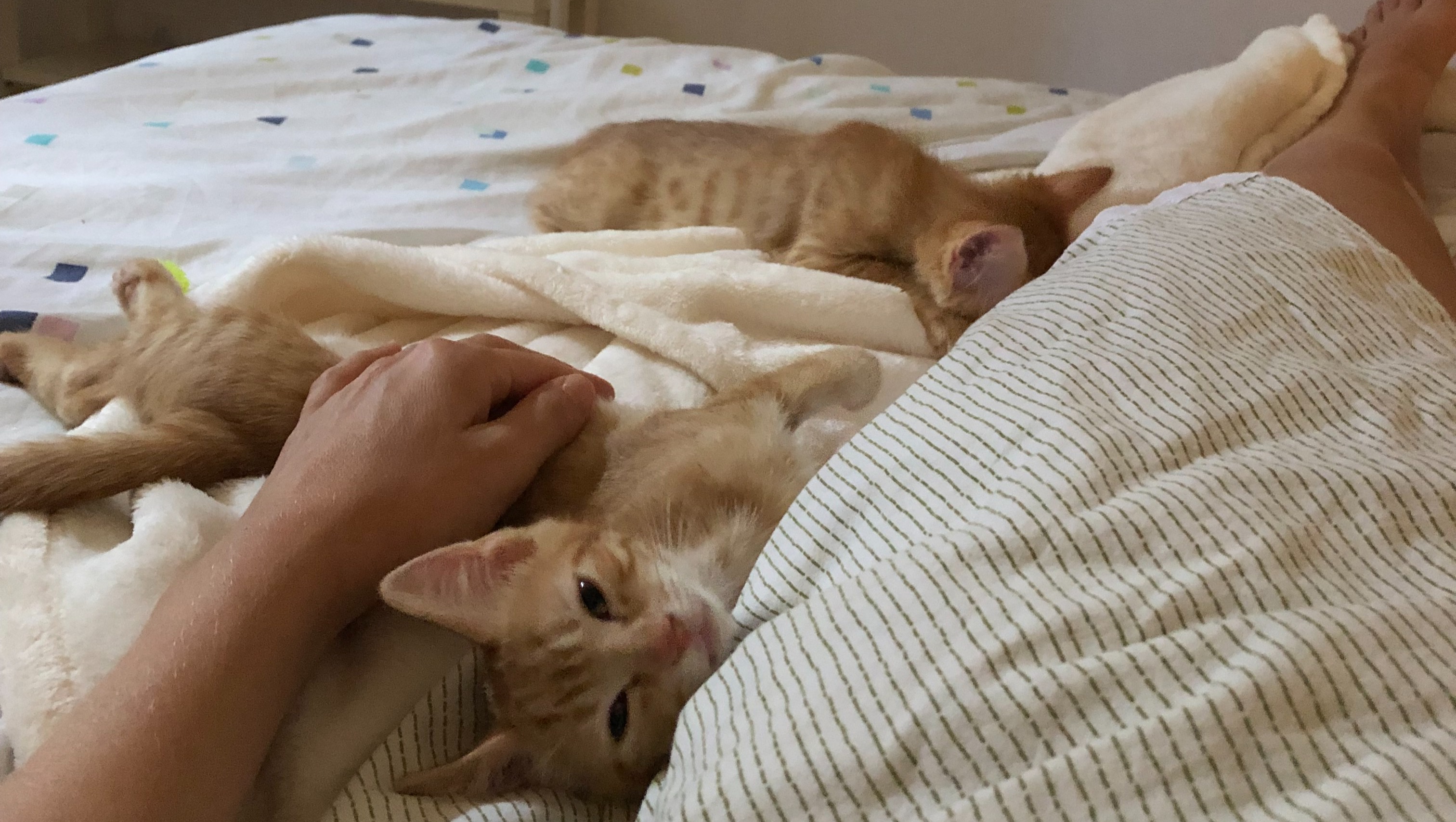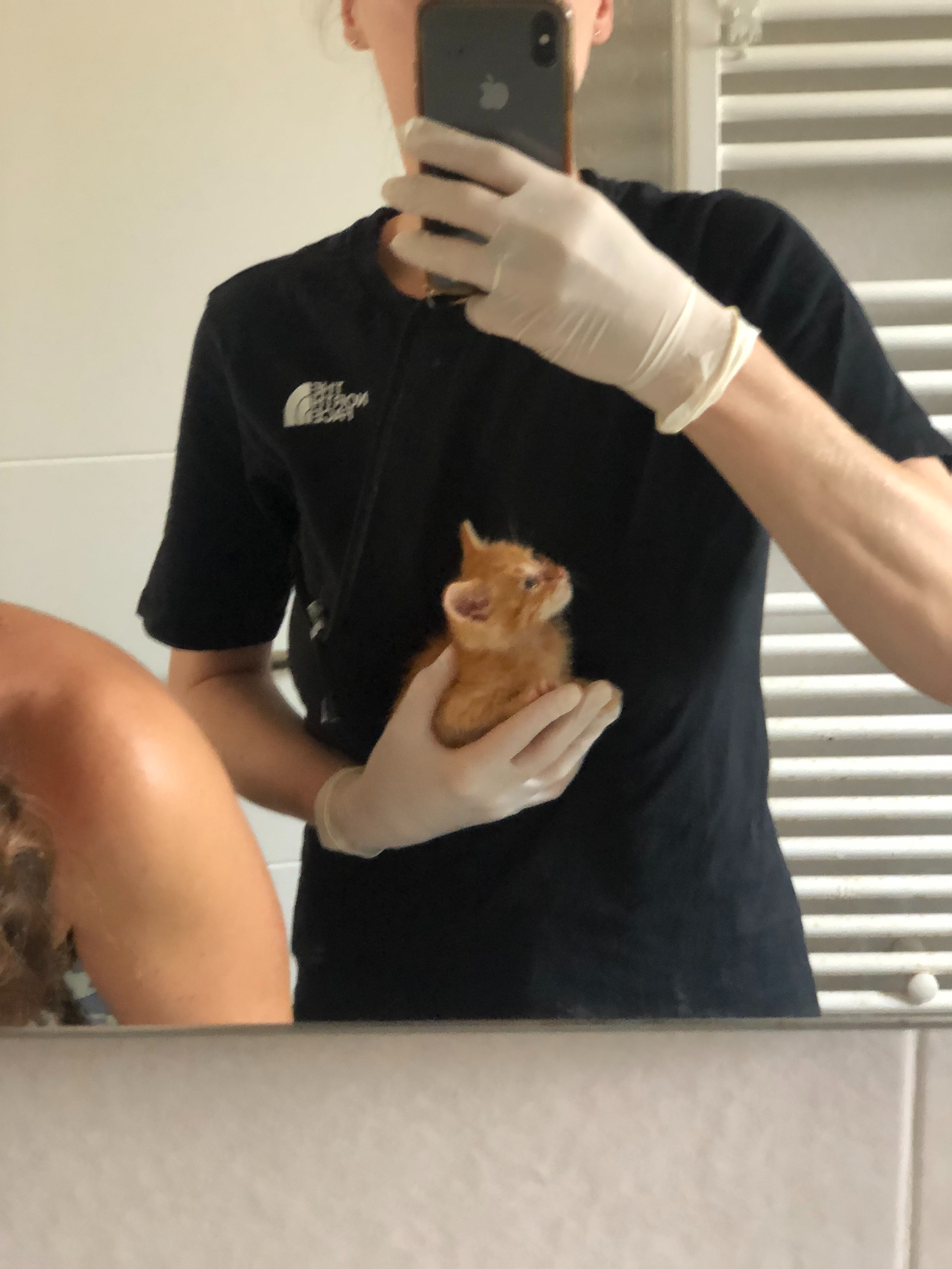The kittens stayed with my friend’s former sweet neighbour, who had an extra room and kindly let us use her bathroom for these little orange fur babies.
