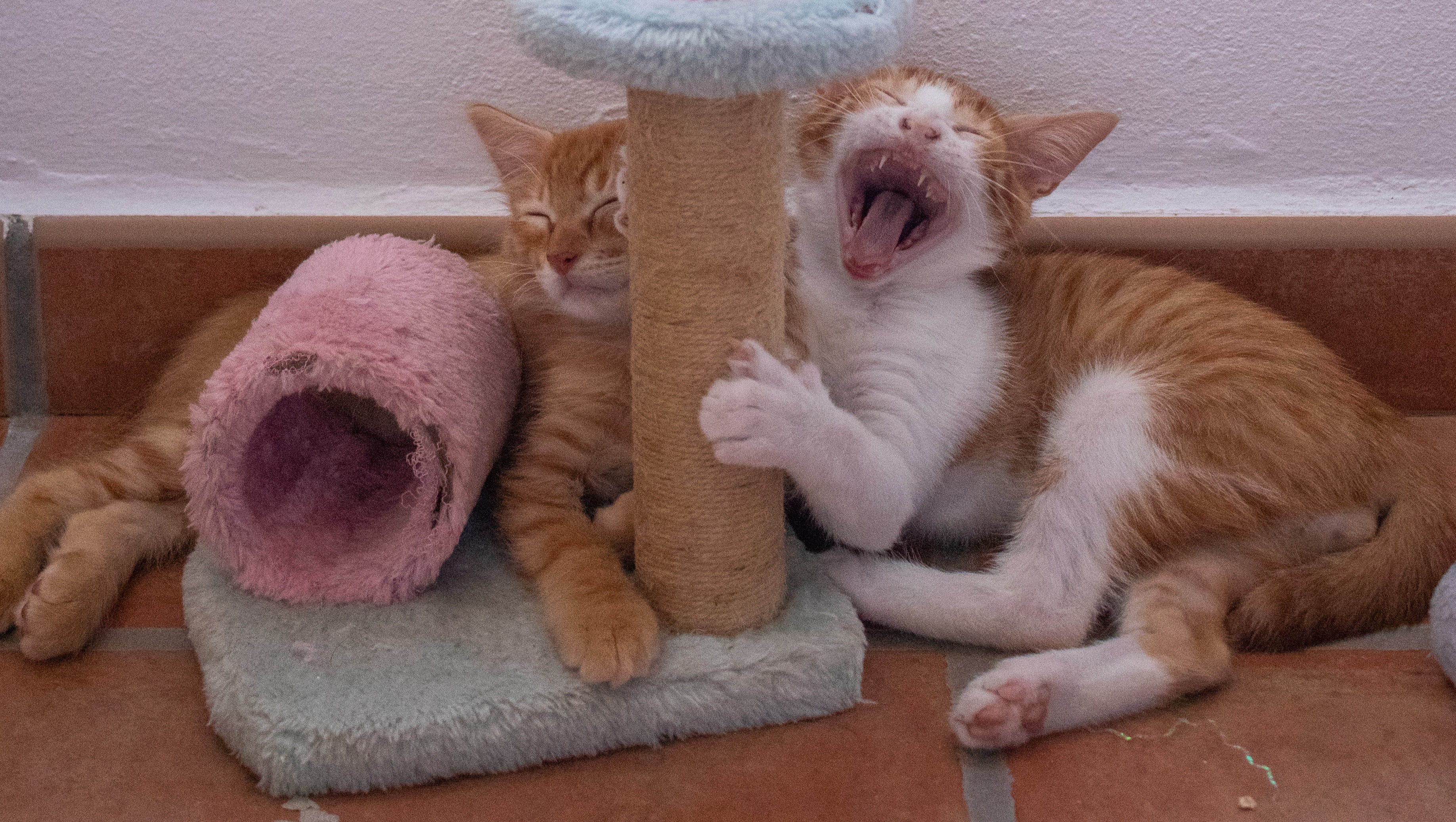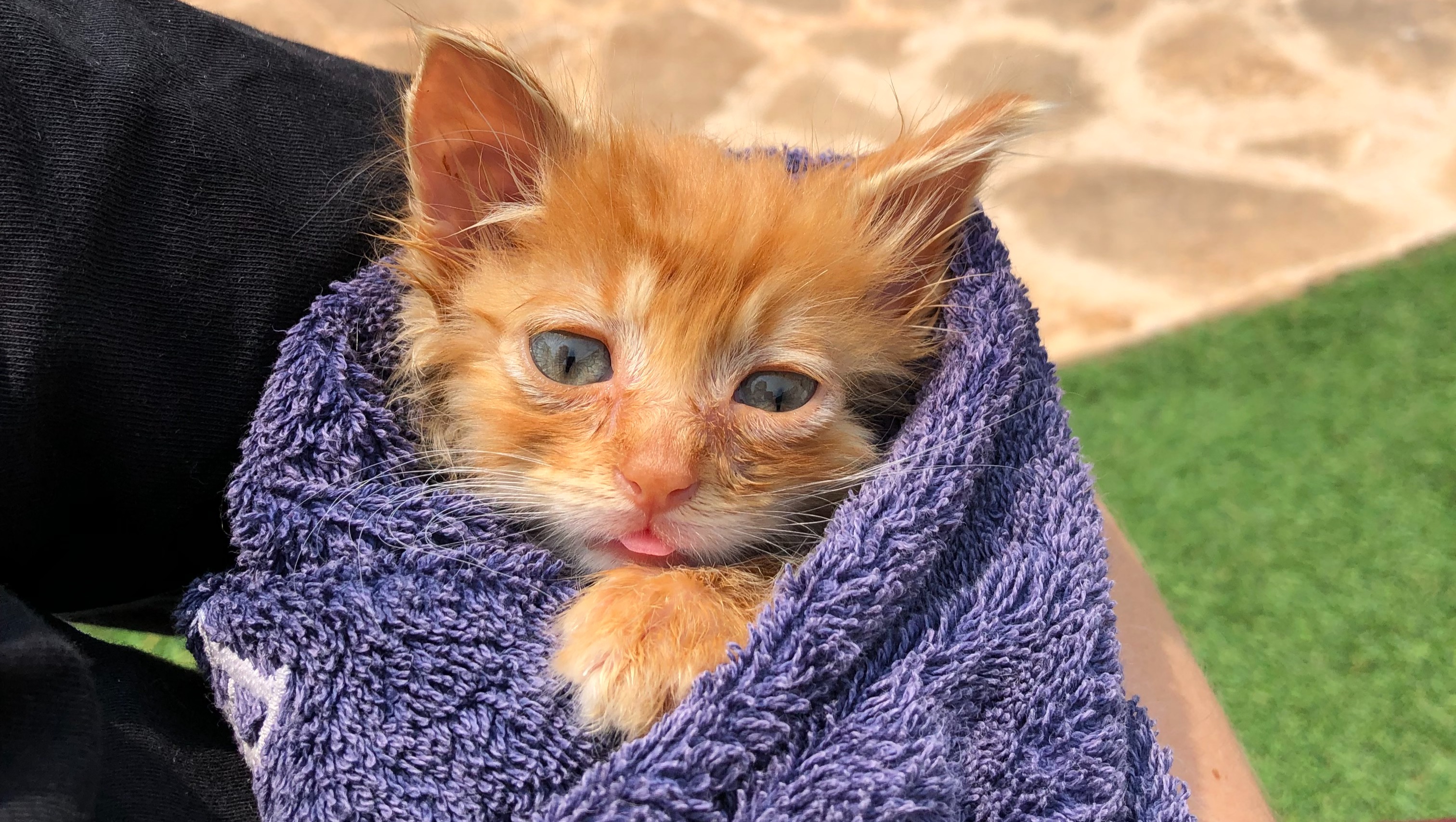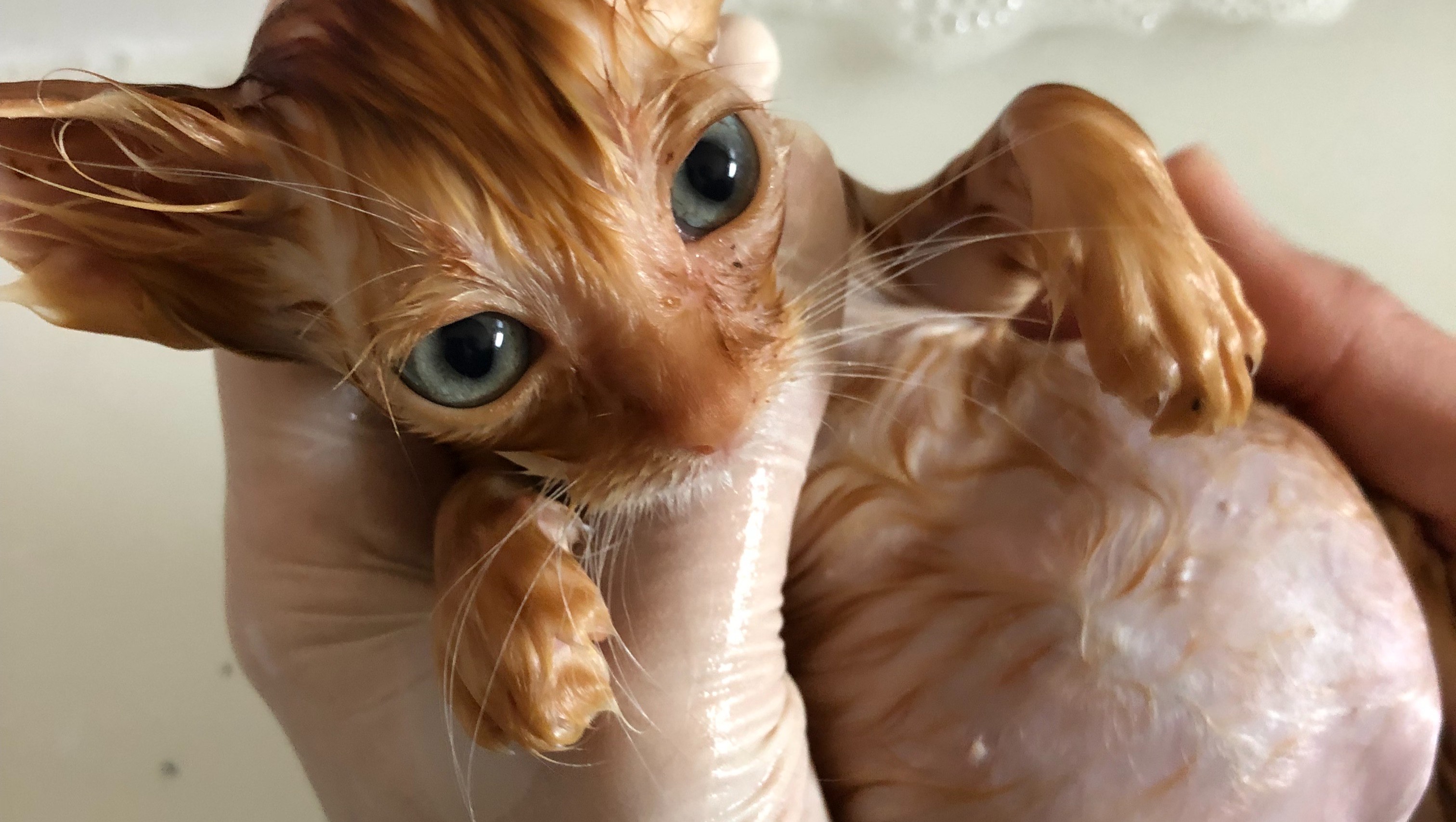 The kittens stayed with my friend’s former sweet neighbour, who had an extra room and kindly let us use her bathroom for these little orange fur babies.