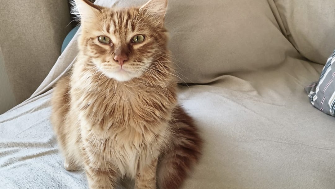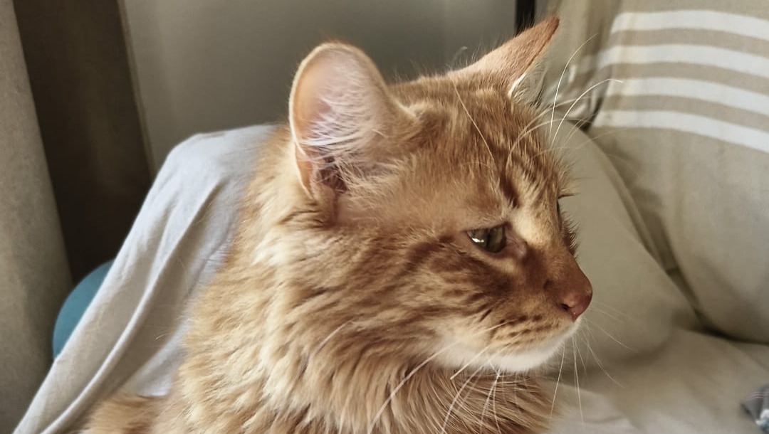 Look at him now! He’s grown into a big, fluffy orange cat!