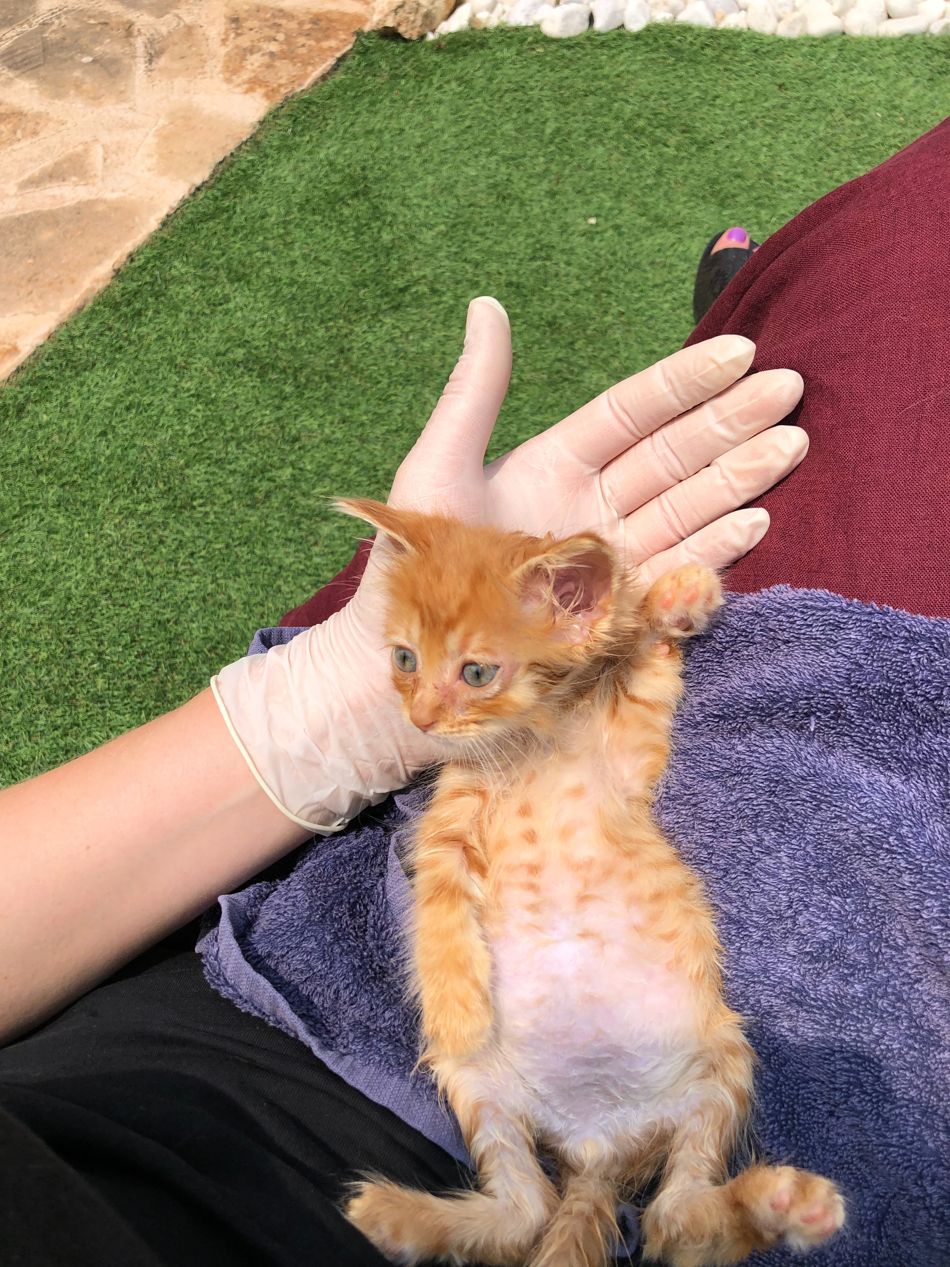Toro and his 2 brothers were dumped on the streets of Mallorca last year. A friend of mine rescued the kittens, we bathed them, removed the fleas and gave them food and eye drops.