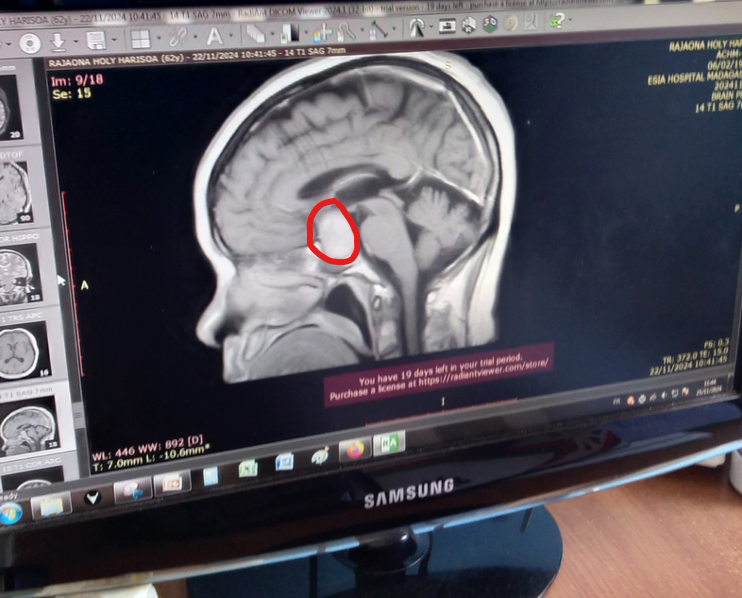 En mars 2025, dans l'imagerie IRM, la tumeur est de 2,8 cm. Mon oeil droit est aveugle et le gauche s'affaiblit rapidement. Les neurochirurgiens sont catégoriques : sans une opération urgente, je risque une cécité irréversible.