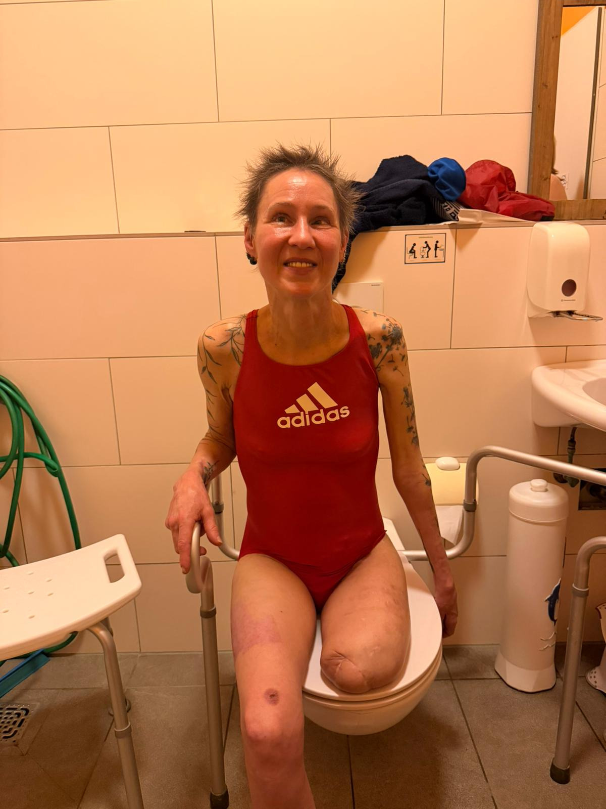 Um mein Leben zu retten, musste mein linkes Bein amputiert werden. Doch selbst damit endet diese Geschichte nicht. Die Nerven in meinem Becken sind so stark beschädigt, dass ich sehr wahrscheinlich niemals eine Prothese nutzen kann. Mein linker Arm bleibt fast vollständig gelähmt. Ein Katheter begleitet mich immer noch. Und durch die resistenten Keime wurde mir eine Reha verweigert – der Weg zurück in irgendeine Form von Selbstständigkeit ist also bisher nicht einmal begonnen worden.