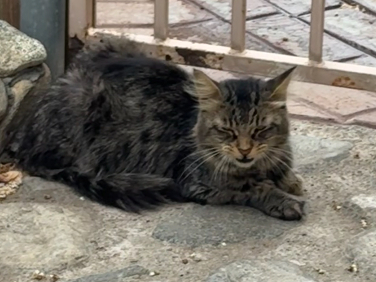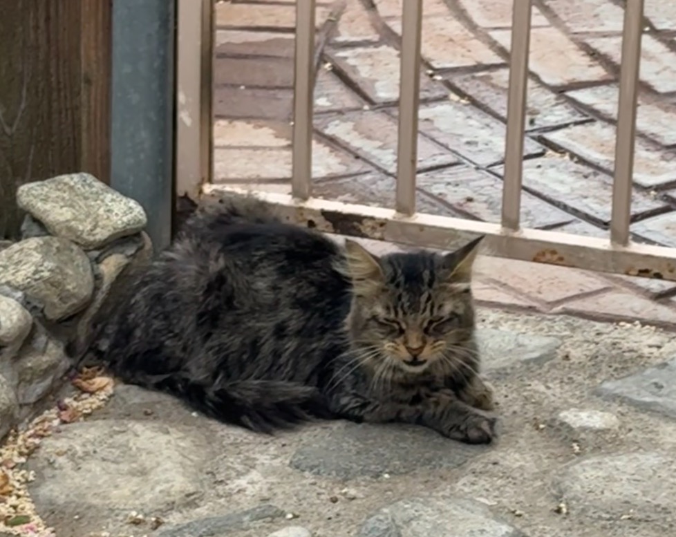 Friend is one of the community ferals I’ve fed and provided shelter for, for about 2 maybe 3 years. We named this kitty Friend not knowing its gender and because of its kind eyes. This cat is jokingly known as “Jesus” cat amongst my friends and I because Friend always helps rescue neighborhood strays. I have witnessed Friend bring starving cats to the house to eat and watching over them so they felt safe to enjoy their meals. Friend has never let me give pets but over time we have grown to enjoy each others company. This cat is outside my window first thing in the morning and comes to say goodnight everyday. When mom and I are outside gardening or cleaning Friend is there enjoying the sun.