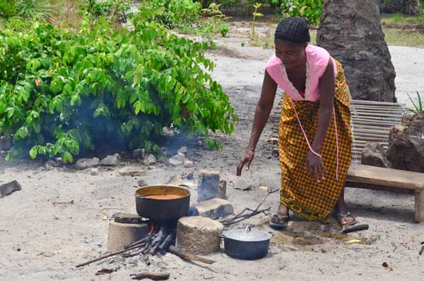 Esther and her older boys cook their meals Outside
