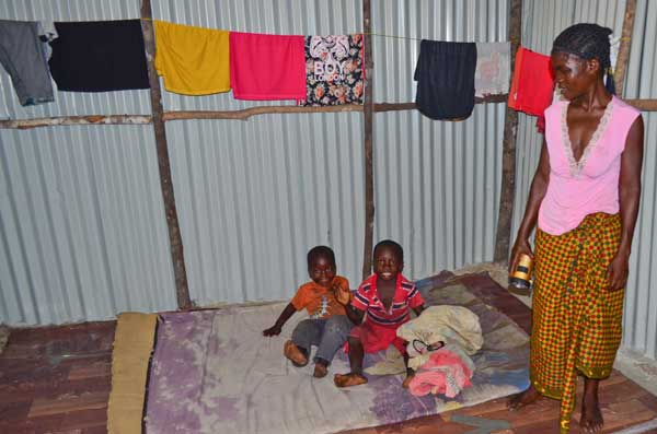 They live in a tin building with No Power and No Water. When the sun goes down..it is Dark.