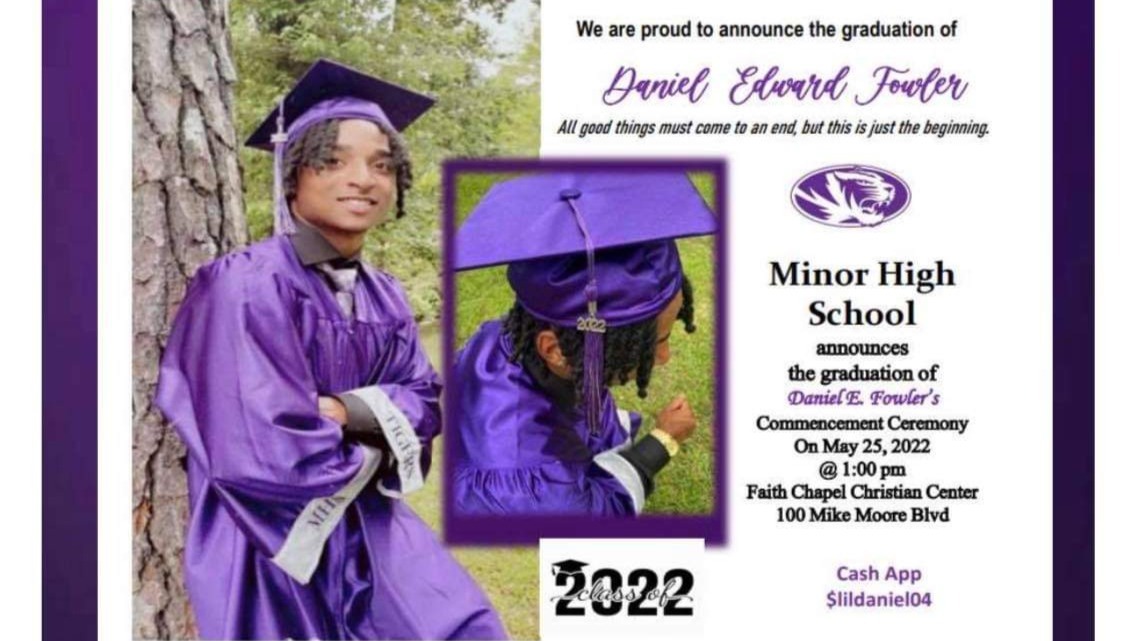 Daniel was a wonderful and loving 18-year-old son and brother looking forward to life. He graduated from Minor High School on May 25, 2022. He leaves behind his parents and four siblings.