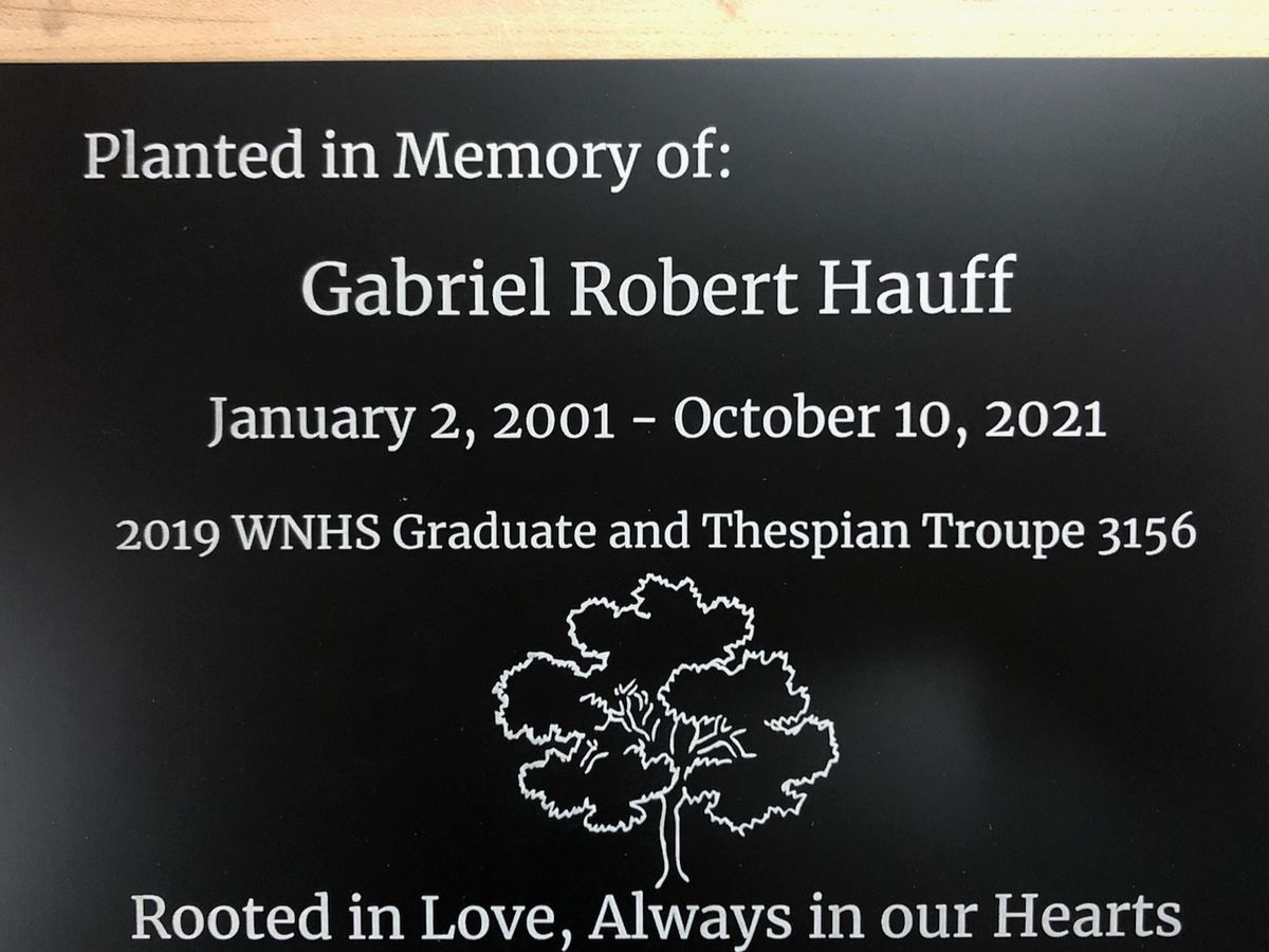 It was decided to plant a tree on the front lawn at W.N.H.S. close to the stage entrance of the theater, along with this plaque. Please consider donating to help offset the cost. Feel free to pass this on to friends of the Hauff family. I would like to keep it off of social media.