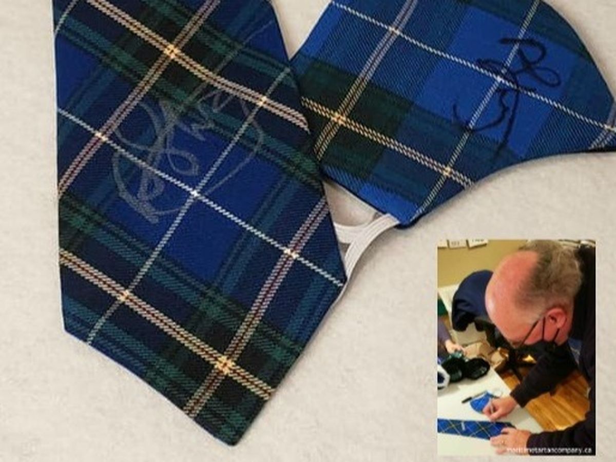 This Nova Scotia Tartan Tie and Mask is signed by Dr Robert Strang. Nova Scotia's top Doctor who is getting us through the pandemic.