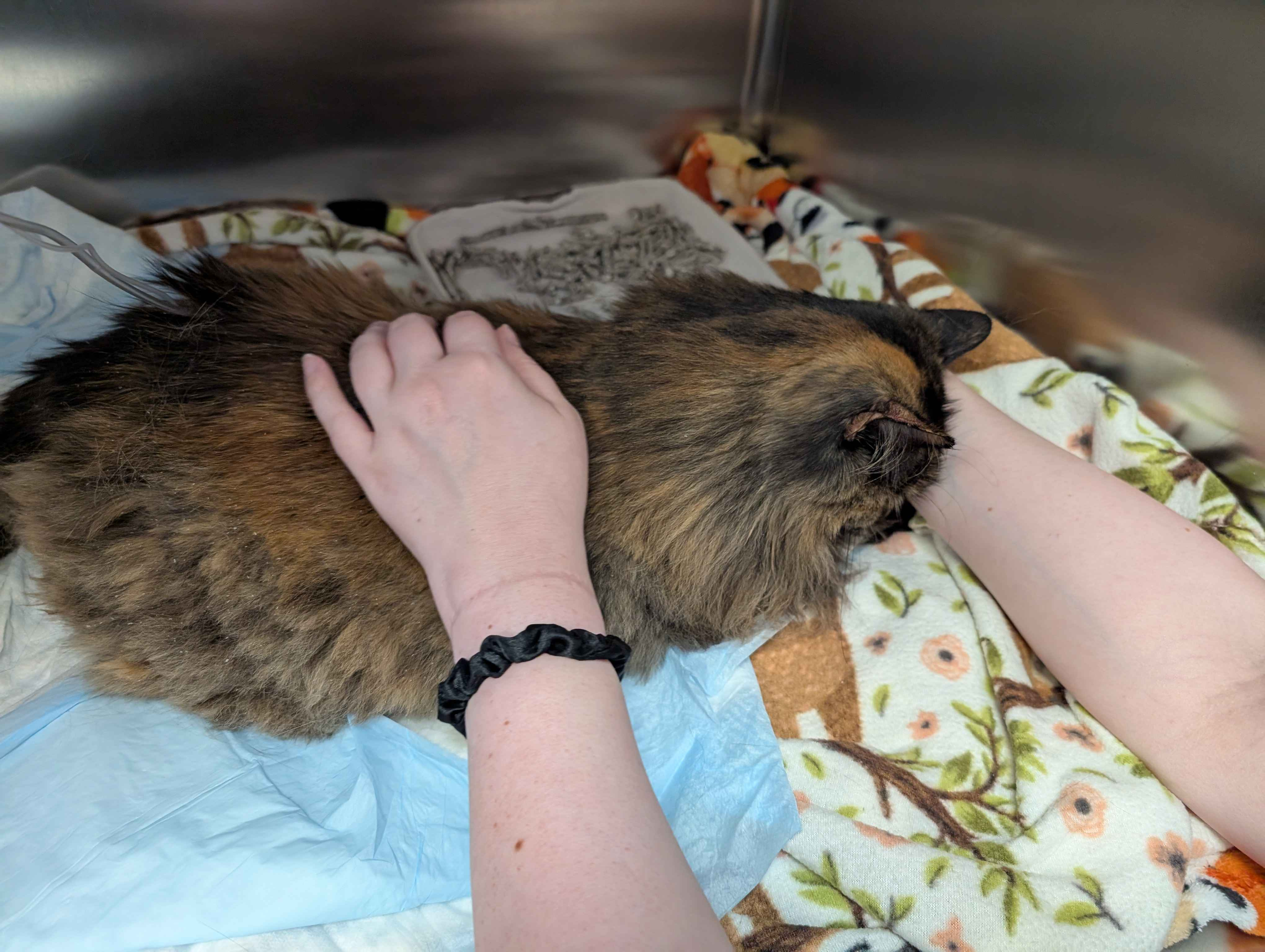 I know most people have their belts pretty tight right now, and I understand if there's not much left to give for our little tortie girl. Any attention or money you can give is very much appreciated, along with your prayers.