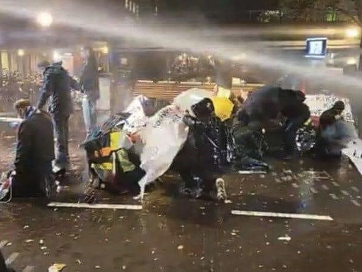Op vrijdag 12 november heeft de ME een directe aanslag gepleegd op Kikkers de-escalatie opstelling. De speaker heeft het natte geweld niet overleefd en ook de Kikker Kino is kapot geschoten.