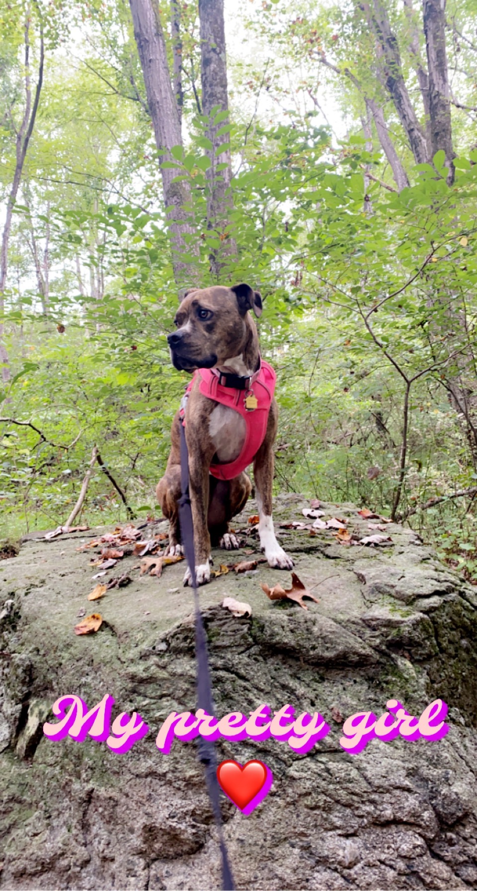 She loves going for car rides, walks, slow sniff strolls, adventures, all the things. Oh, and can’t forget about the occasional zoomies! Anyone that knows my girl falls in love with how loving she is, all the kisses & hugs a person could ask for.