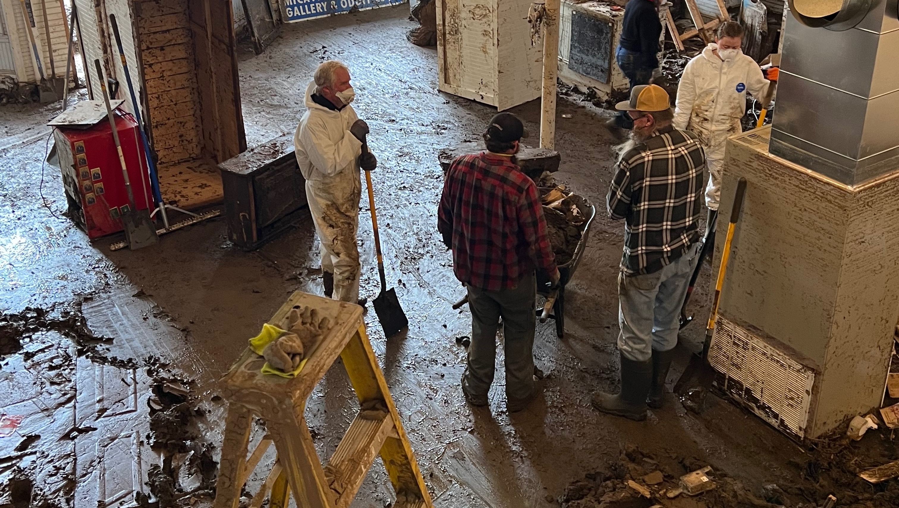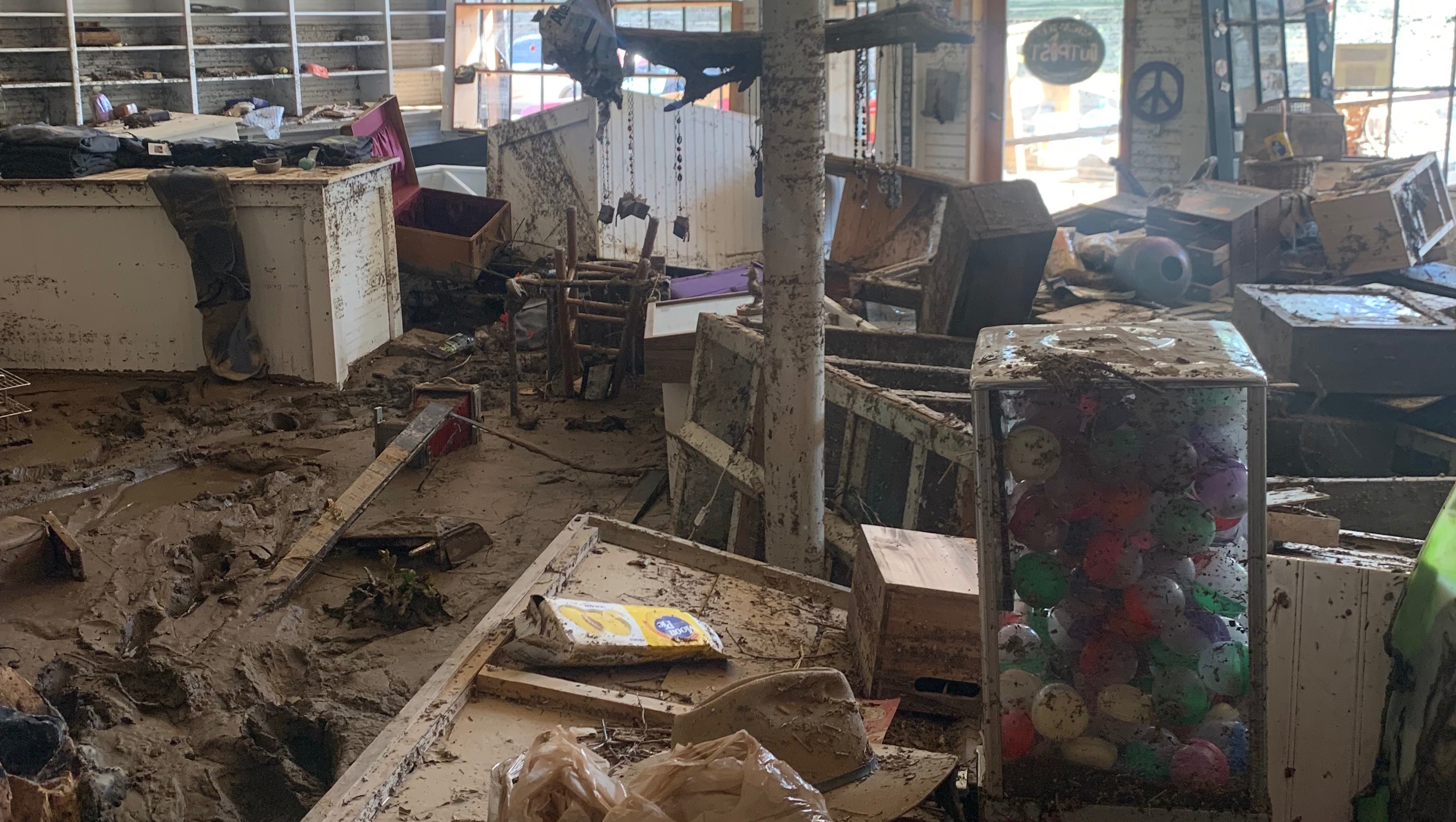 Hurricane Helene and the “geological event” that Helene brought with her left Micaville in tatters. My building took on 5-6 feet of flood water and left behind almost total destruction of Micaville Outpost’s business underneath 8” of mud.