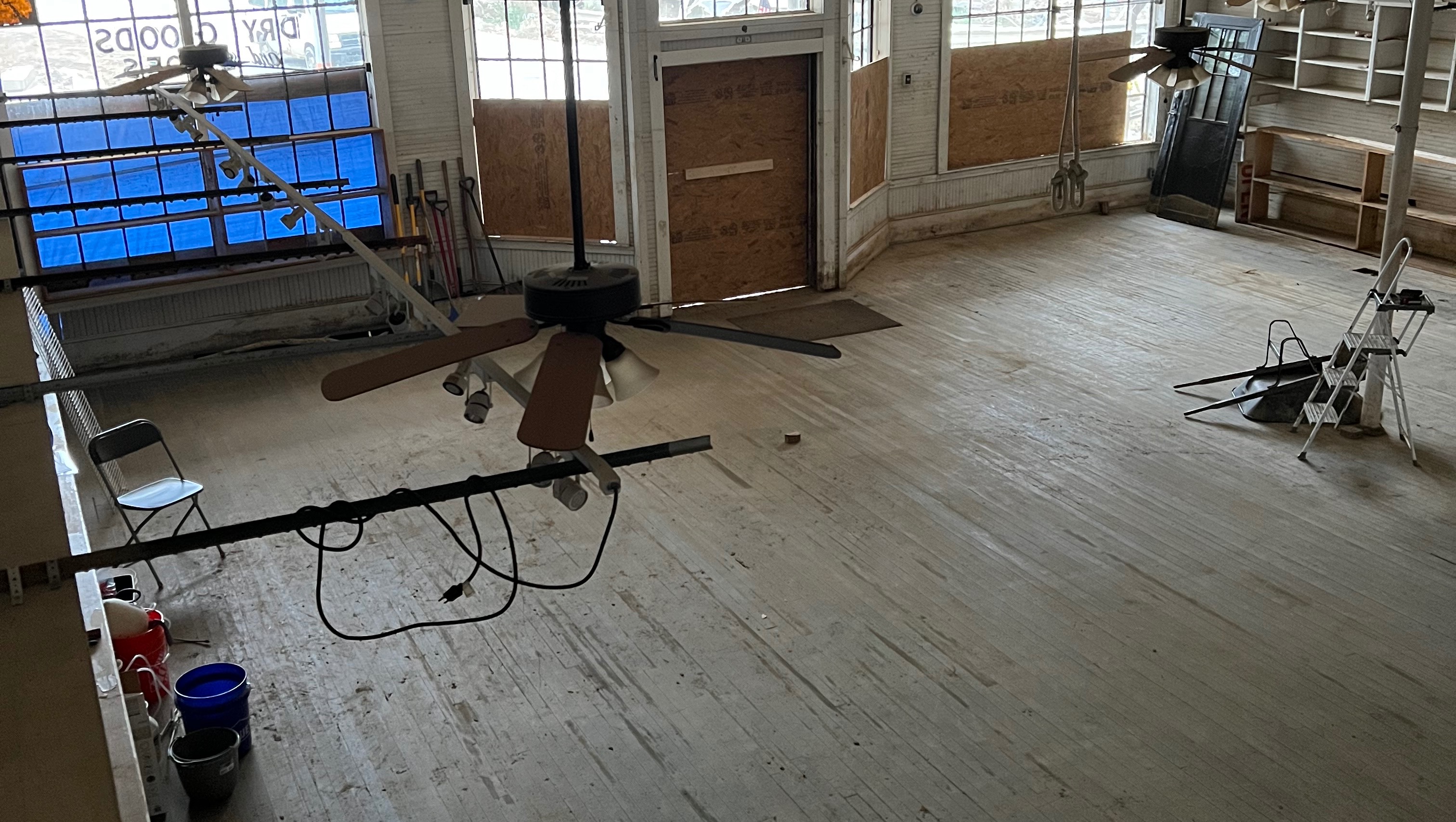 The damage to the building was severe but not fatal. The engineer’s report confirmed that the foundation and structure are sound, and there’s no reason that the building cannot be saved. With volunteer efforts, we’ve shoveled out the mud, torn out wet and unsalvageable building materials, and started the painstaking cleaning of historical features like the shiplap siding, built-in shelves and the gorgeous wood floors.