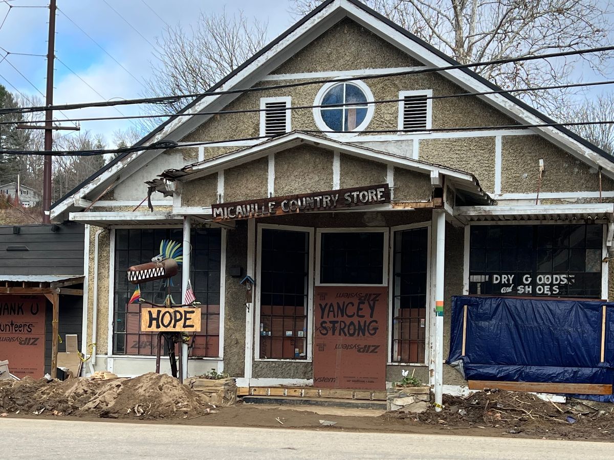 Please help us repair the Historic Micaville Building, the cornerstone of Micaville in Yancey County, North Carolina, destroyed by Hurricane Helene.