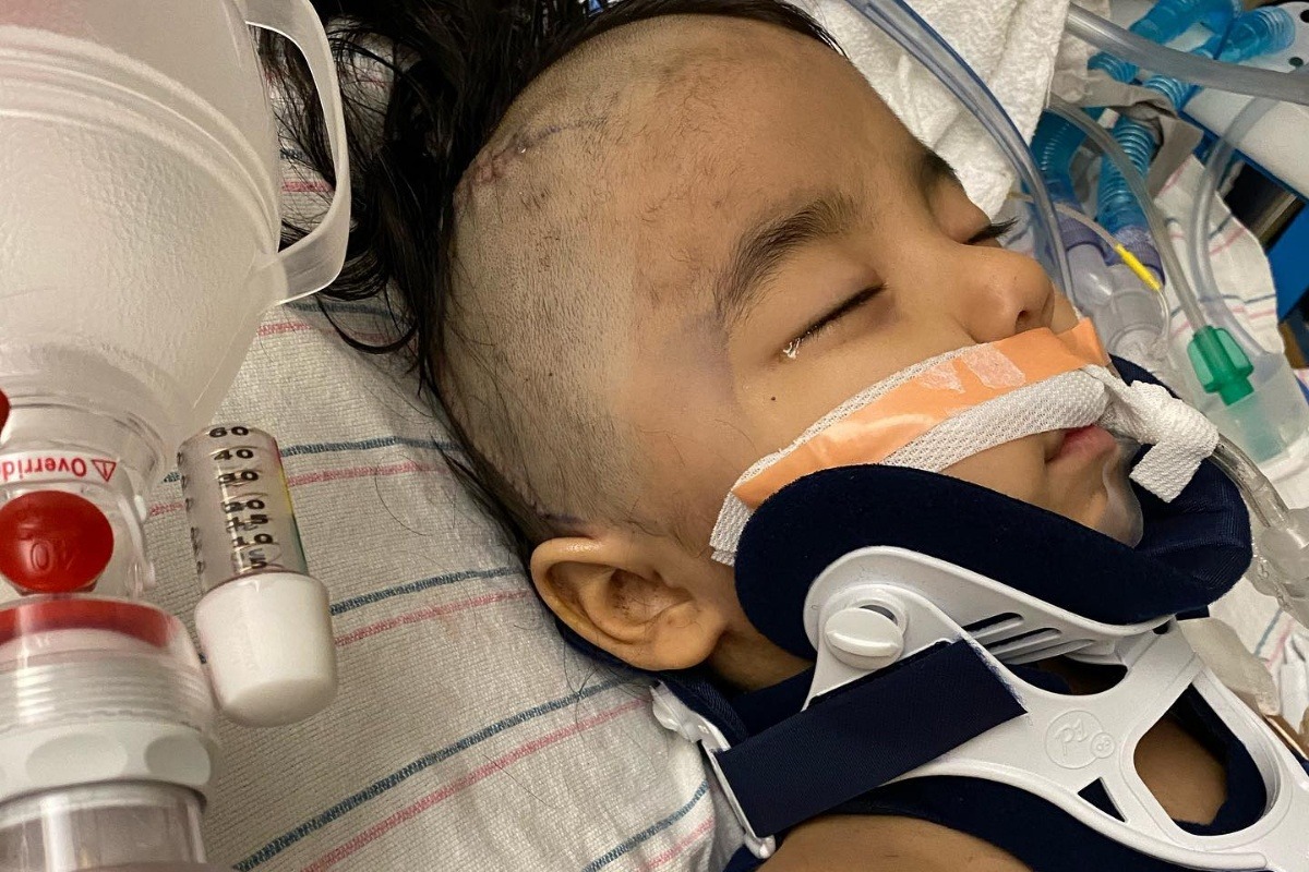 Sadly this week, what should have been a standard toddler tumble off the couch, ended up with a fractured skull and bleeding in the brain. He was transported via Helicopter from his home town in Idyllwild to the Loma Linda Children's Hospital that night. They rushed him into the Operating room and began a very intense operation to open his skull and remove the fluid building up. What they found when they went in is that Mighty Mavericks skull is the thickness of a 6 month old baby. They are not sure if the shunt was malfunctioning and not letting the fluid drain, which could have caused the skull to thin or what is going on. But this little guy has a long road ahead of him to healing.
