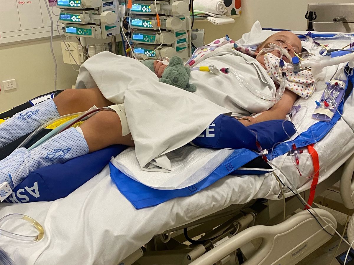 Miles was struggling and it was decided that he should be transferred to the Royal Childrens Hospital in Brisbane to be near his Renal team, so on Monday October 10th he was taken by ambulance to PICU at RCH. He deteriorated rapidly and was put onto breathing tube and sedated. Further tests discovered that along with the CMV and Parvovirus he was also found to have picked up PJP a fungal infection that also attacks the immune suppressed. The transplanted kidney was showing signs once again of rejection and Miles was put onto a dialysis machine to take some pressure off his body.