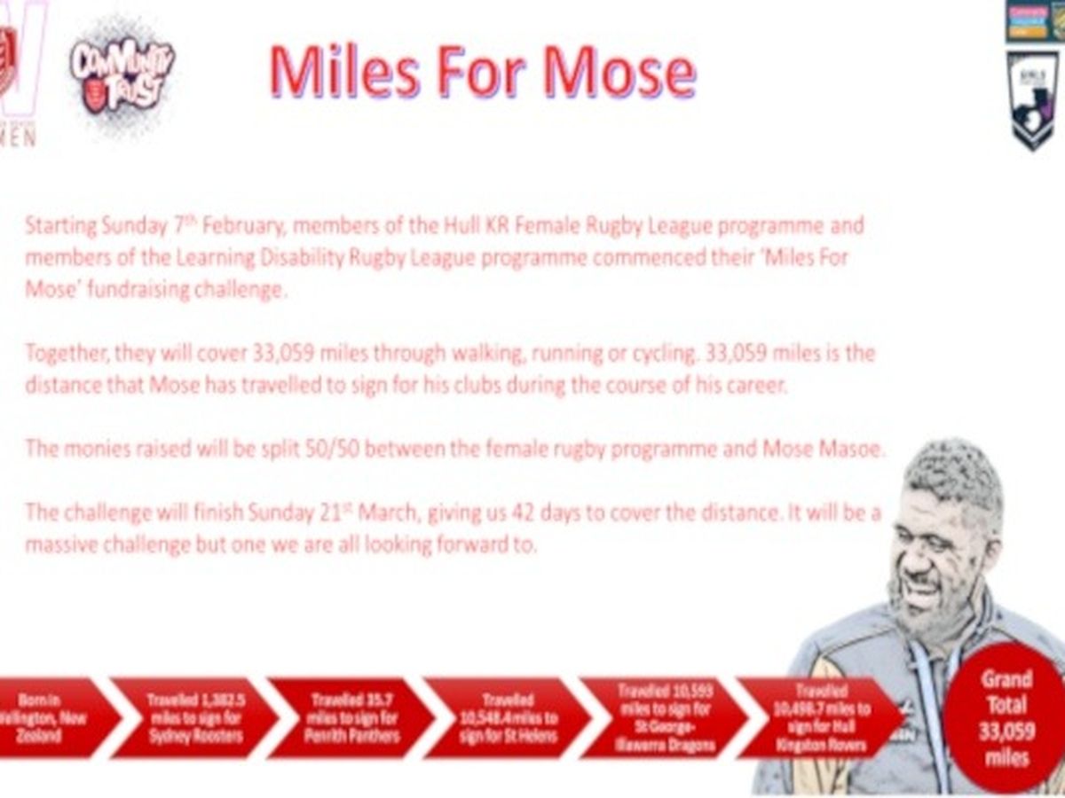 The second reason is, as mentioned above, this programme is self-funded by the participants as all amateur rugby league teams are. As a result of this, we will be splitting all funds raised by this challenge on a 50-50 basis between the Hull KR Community Trust Female Rugby League Programme and Mose Masoe.