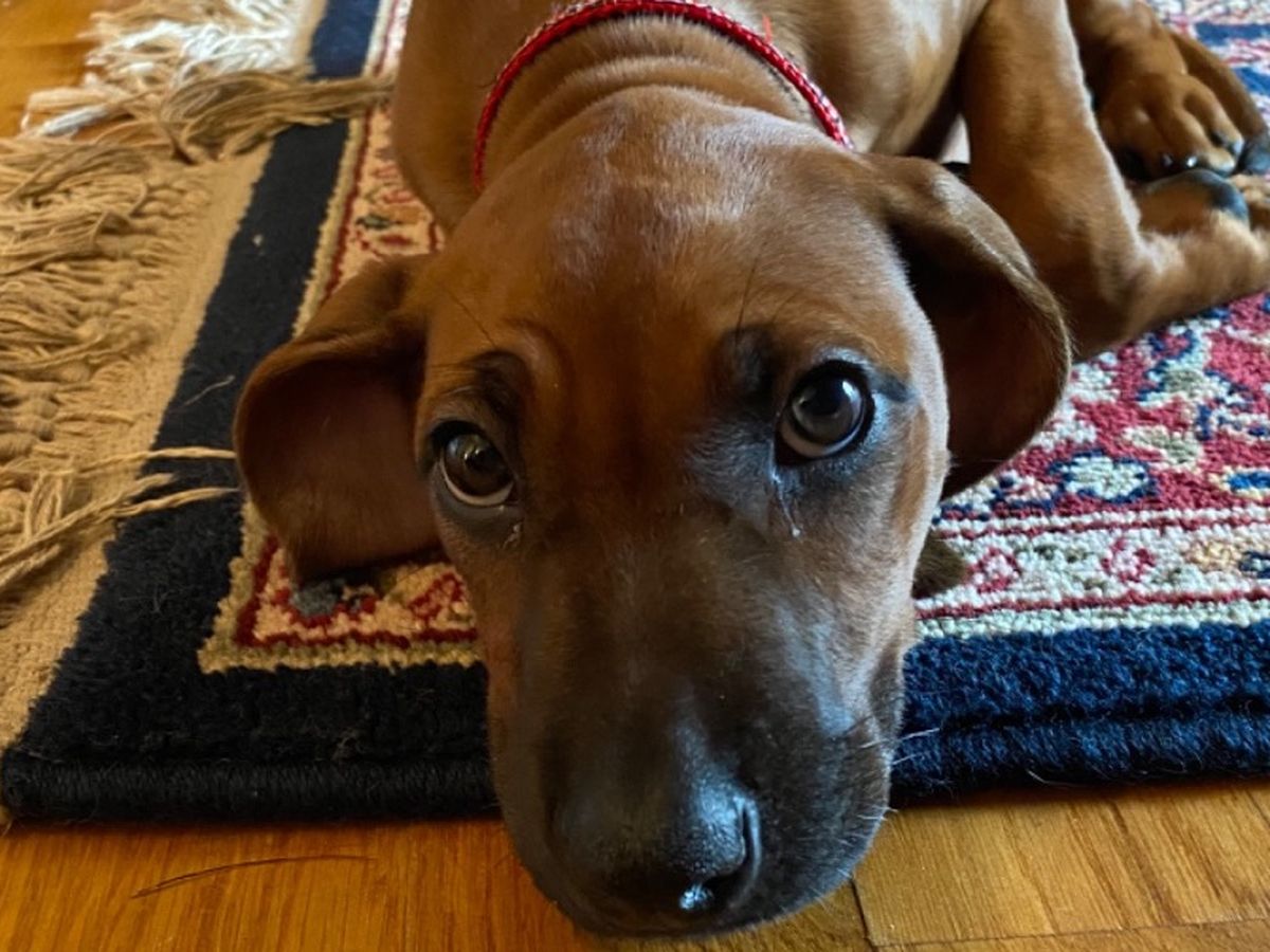 My roommates and I are fostering two Rhodesian Ridgeback puppies who were rescued from a backyard breeder, where they were not properly cared for and became severely malnourished.