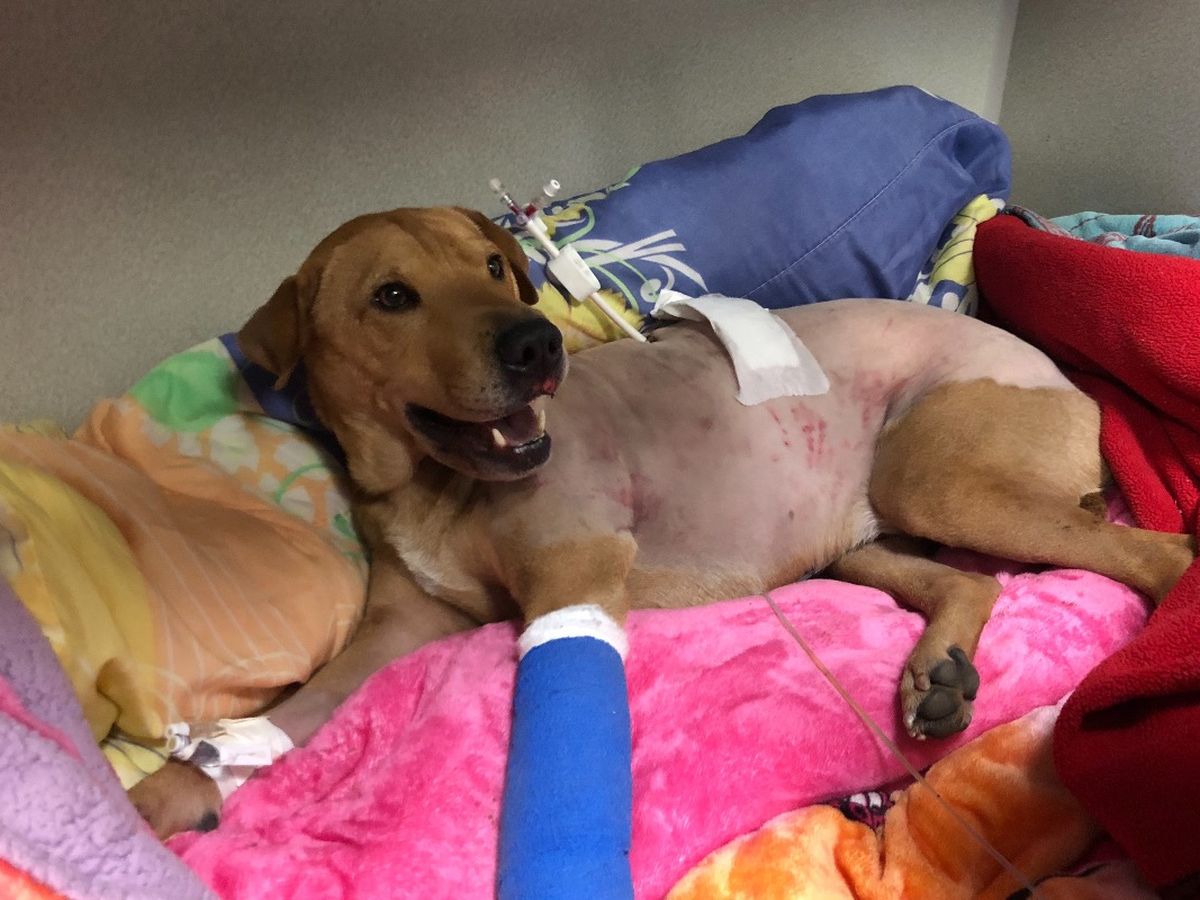 Milo suffered a broken spine and wrist, resulting in a highly possible permanent paralysis to his rear legs.