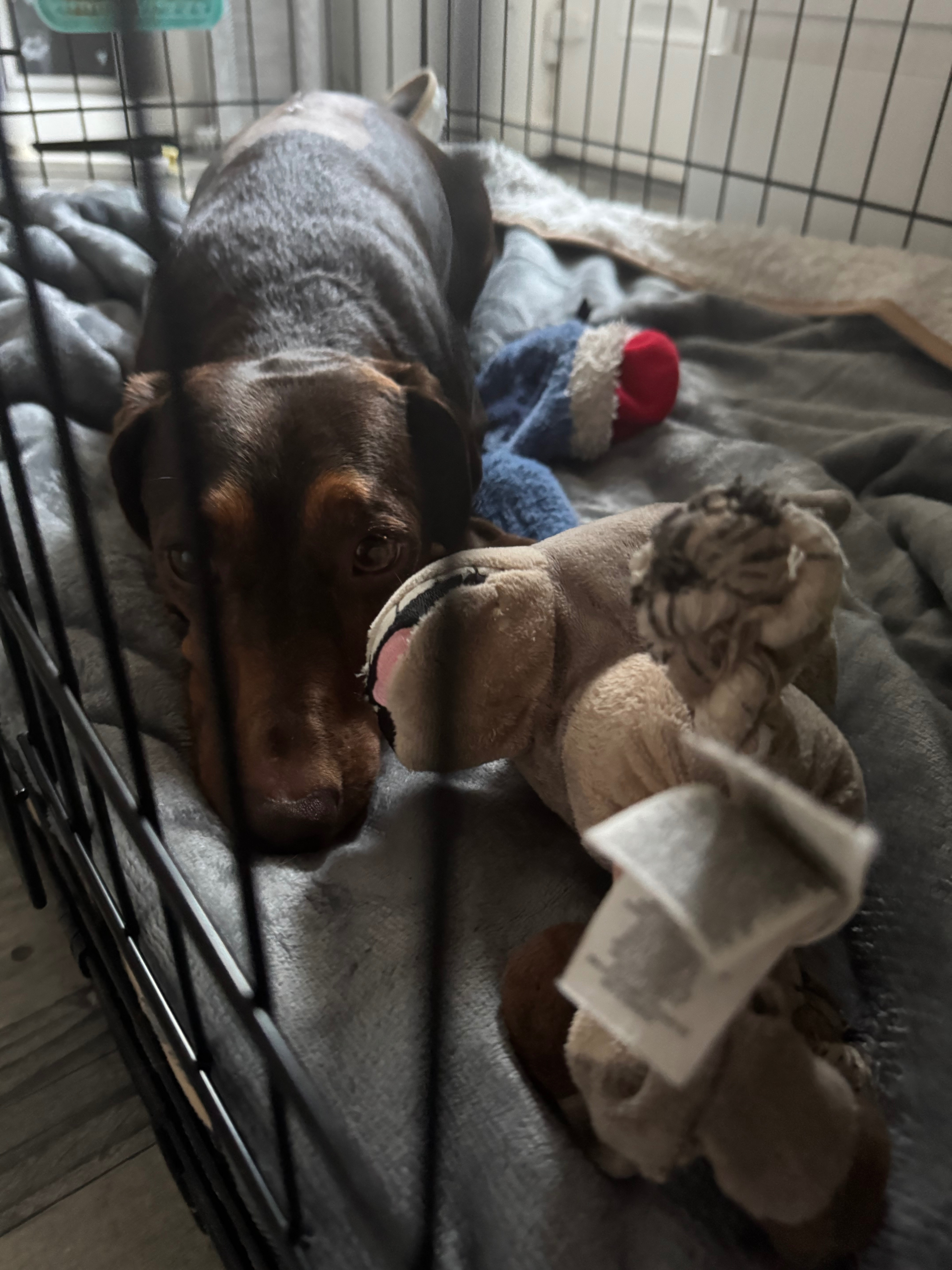 Milo our 3 year old dachshund was a healthy happy little dog up until the 2 July when he started to seem a bit off, after going out to the garden that afternoon Milo come in and we noticed he was dragging his back leg, we immediately contacted our vet and took him in, the vet checked Milo over and diagnosed Milo with ivdd and recommended conservative care. We brought Milo home ready for home care, but unfortunately within a matter of hours Milo had significantly deteriorated and lost all movement in his back legs and his bowels and bladder, we rushed Milo back into the vet where she referred us onto a bigger hospital. The RVC (which I may add was absolutely amazing) admitted Milo and done an mri scan and it was confirmed Milo had stage 5 ivdd from a slipped disk in his back. Milo was taken to surgery on the 4 July. The surgery went well with no complications. Milo remained in the hospital until today. He has been discharged home for us to care for him. So far he is doing well. He is still not able to walk and is on strict crate rest. Milo is going to need pyshiotherapy and hydrotherapy once he has healed a little. His still not able to control his bladder but we are hoping in time this will improve. As you can imagine Milo’s operation fell nothing short of very expensive which we had insurance unfortunately his bill exceeded the amount of his insurance, we have covered some bill ourselves and settled the bill for the vet trips but as you can imagine this hasn’t come cheap, hence the reasoning for this go fund me. We are hoping to be able to raise funds to get Milo the pyshio and hydrotherapy as after his operation has healed and cover the remainder of his vet bills as our funds are now exhausted. I would greatly appreciate anything big or small towards his recovery. Thank you for reading Milo’s story and I am hoping I will be able to update this story in the future with news of our little Milo regaining the ability to walk and having our happy, playful doggo back to himself, walking and comfortable ❤️