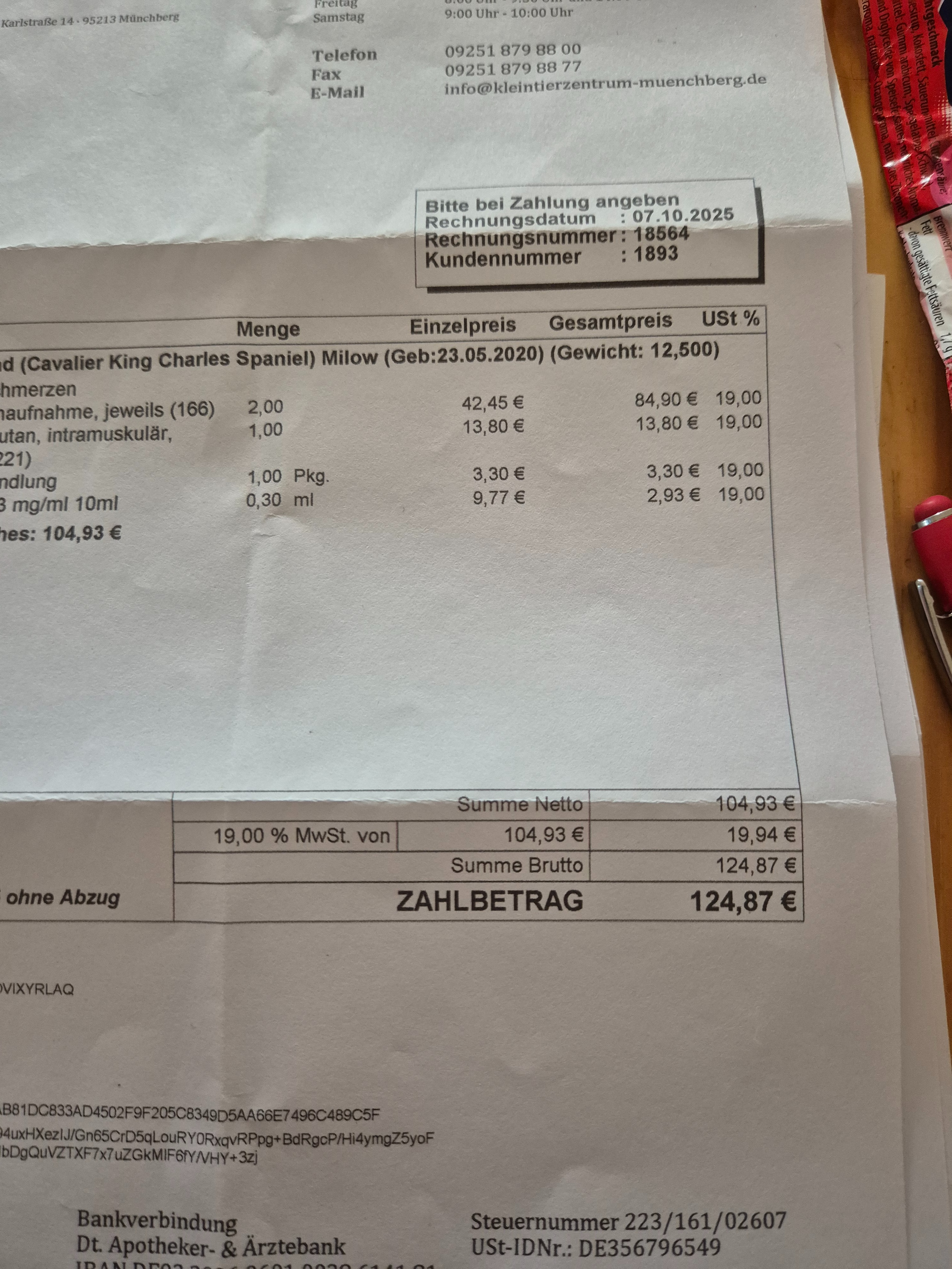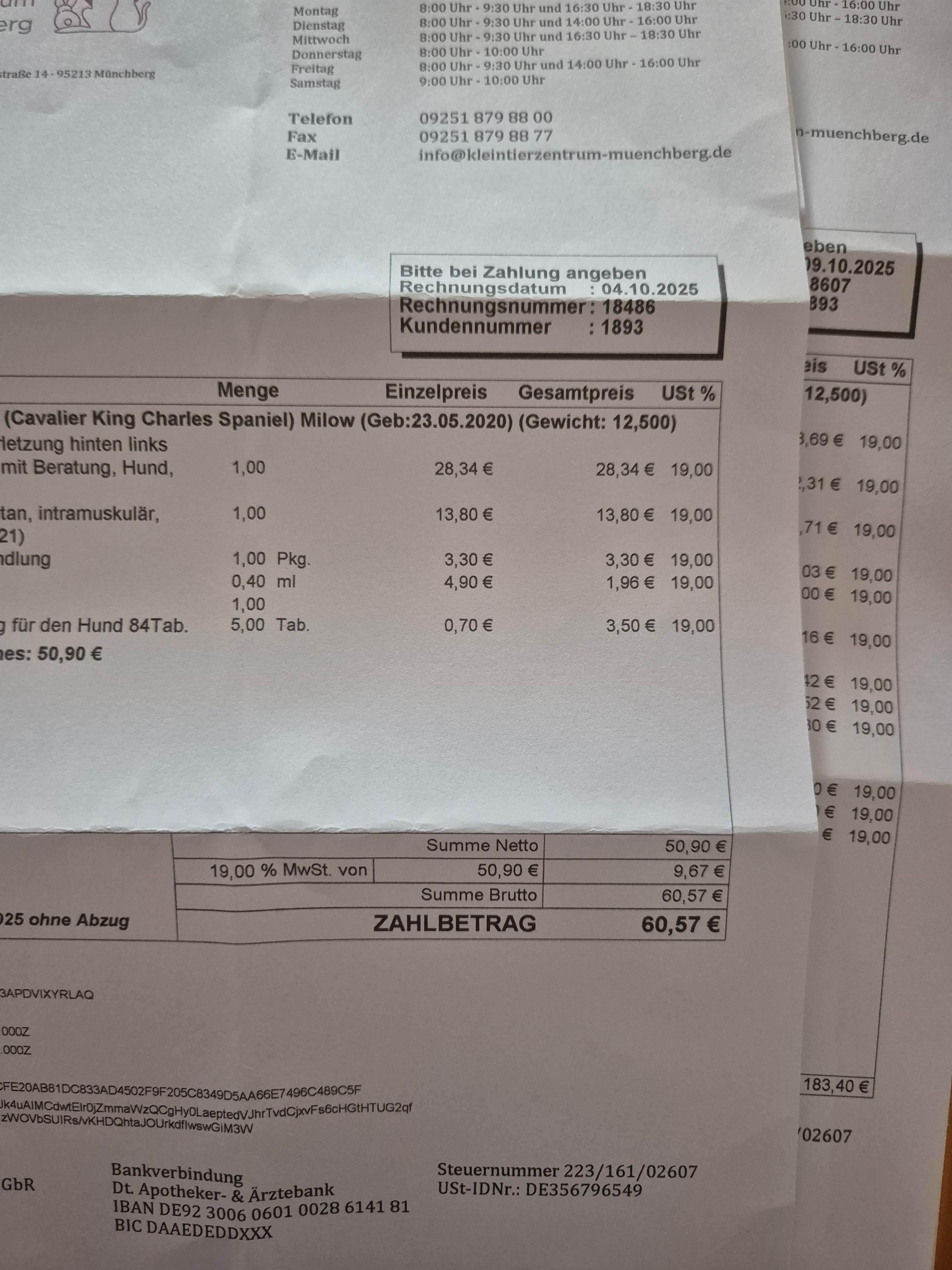 Rechnungen beim Tierarzt bevorstehenden MRT und CT)
