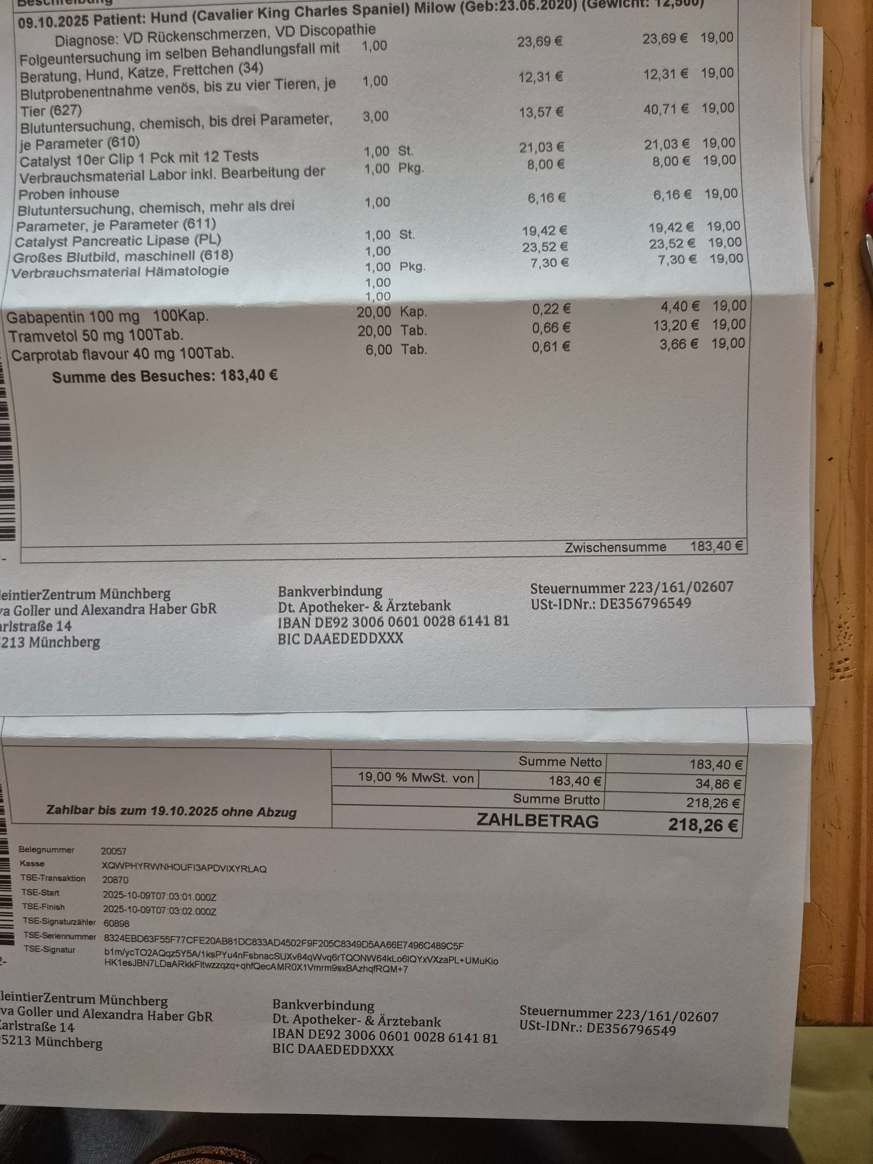 Wir sind jetzt bei Tierarzt kosten, von 455,65 £uro angekommen. Und Milow benötigt