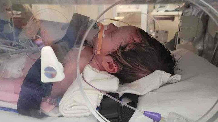 The photo of her with the ventilator was the first time Haley and Andy ever laid eyes on their daughter. Baby Maze was transported to a children's hospital for cooling therapy.