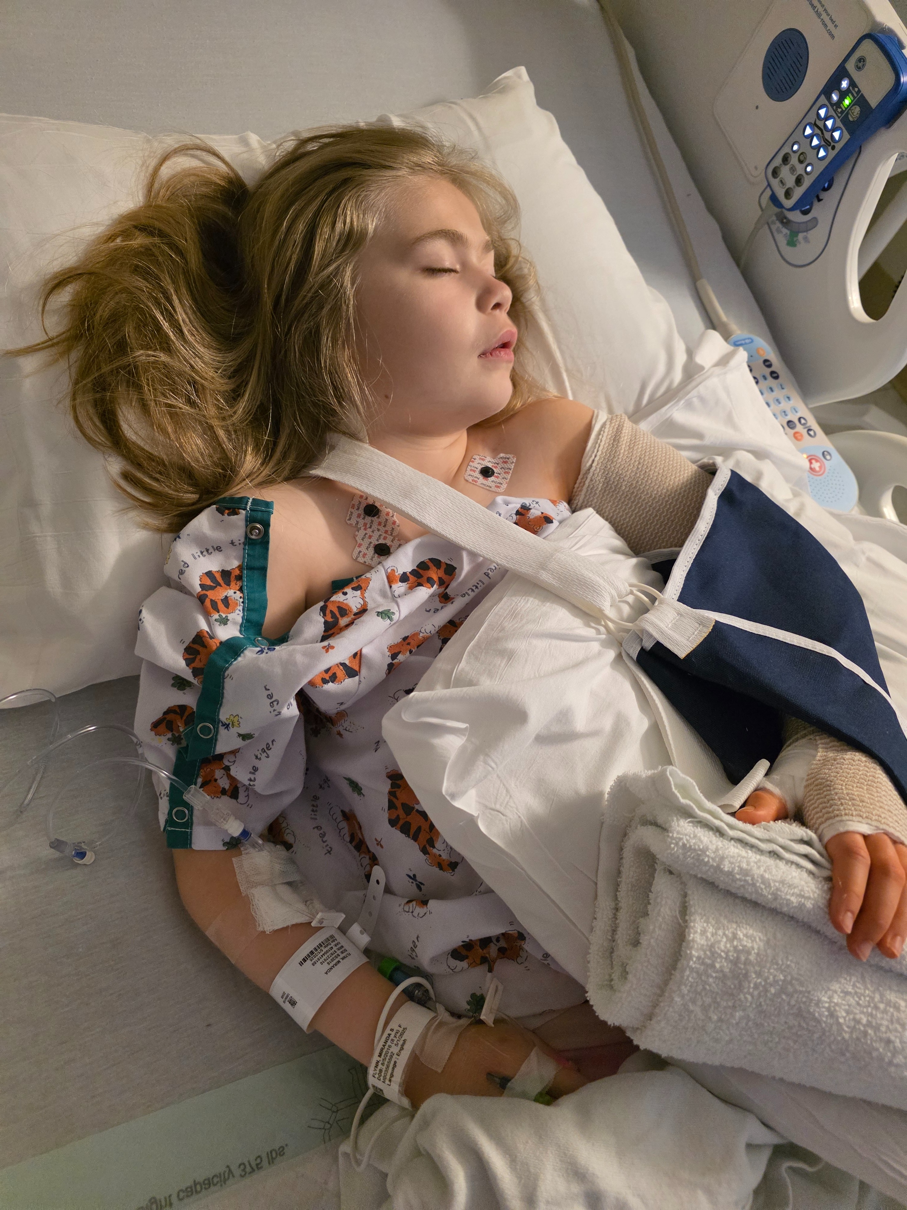 On May 1, 2025 our daughter Miranda had a traumatic accident at school resulting in her seriously fracturing her humerus above the elbow and damaging nerves which allows her to move her fingers properly. She immediately had surgery at the Children's Hospital to rebuild her arm with pins and she is in a cast for about a month. Although her pain has decreased, she will need therapy to use her hand properly once the cast is off.