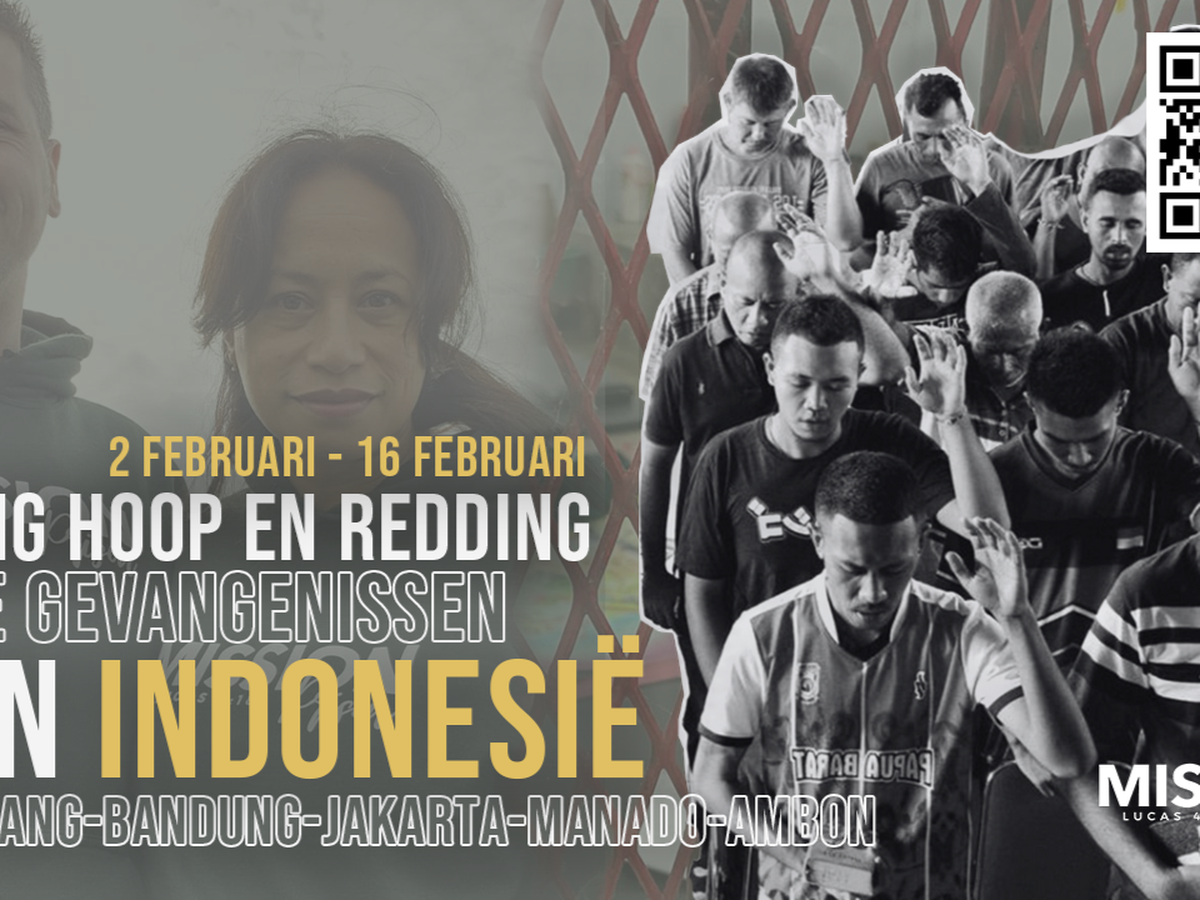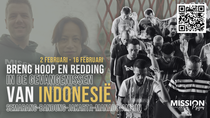 God heeft de deuren geopend naar 520 gevangenissen in Indonesië. Van 2 februari tot 16 februari 2026 reizen wij met ons team om Redding en Hoop te brengen in vijftien gevangenissen in Semarang, Bandung, Jakarta op Java, Manado op Sulawesi en in Ambon op Maluku.