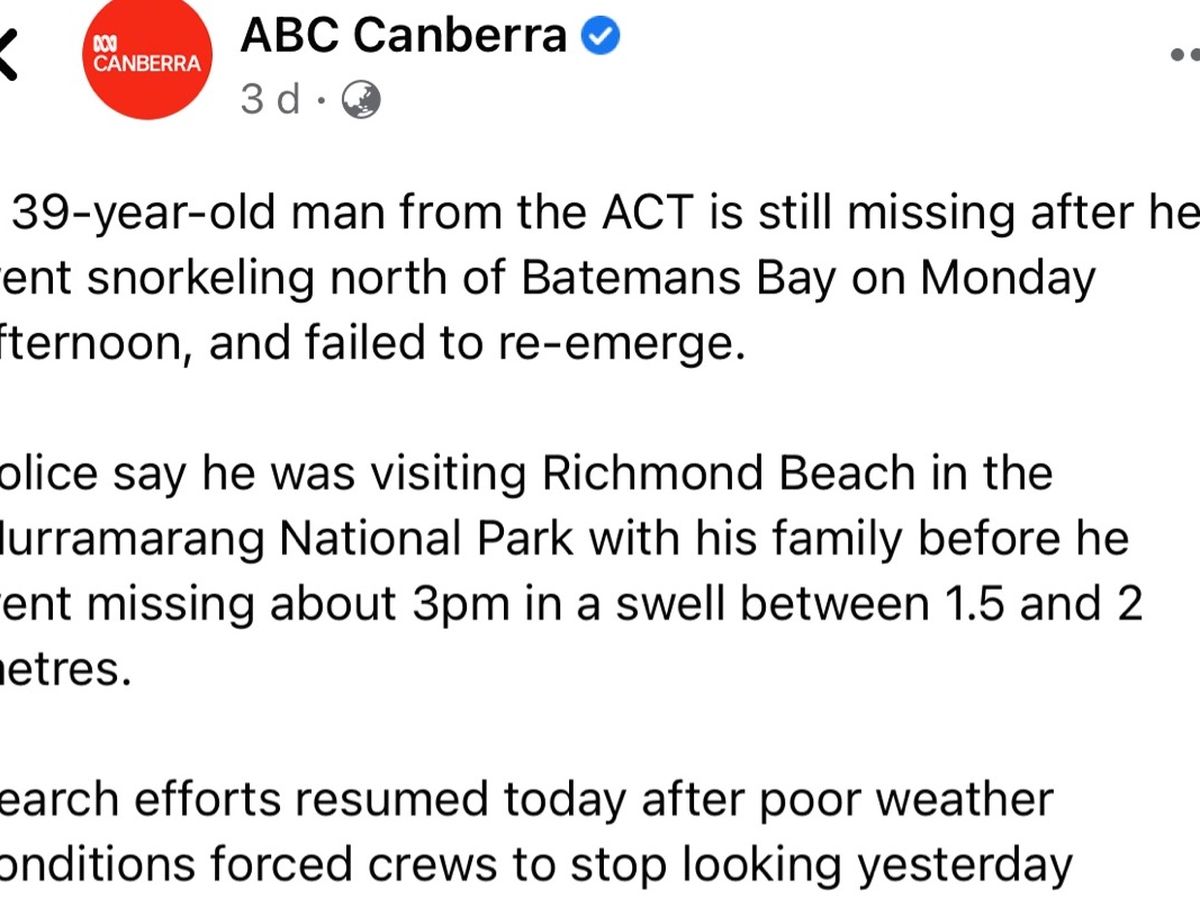 You can see the news in the following links: https://www.canberratimes.com.au/story/7099818/police-search-for-missing-snorkeller-on-south-coast/