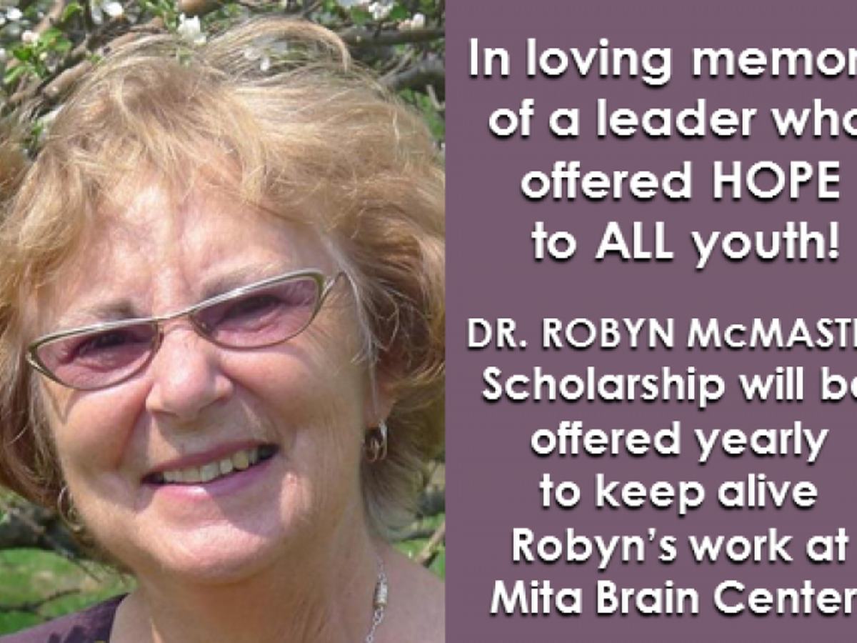 Exciting Dr. Robyn McMaster Scholarship will be offered yearly to keep alive Robyn's work at Mita Brain Center! Robyn looked at hopeless problems with brain-based possibilities-- especially for those often left behind.