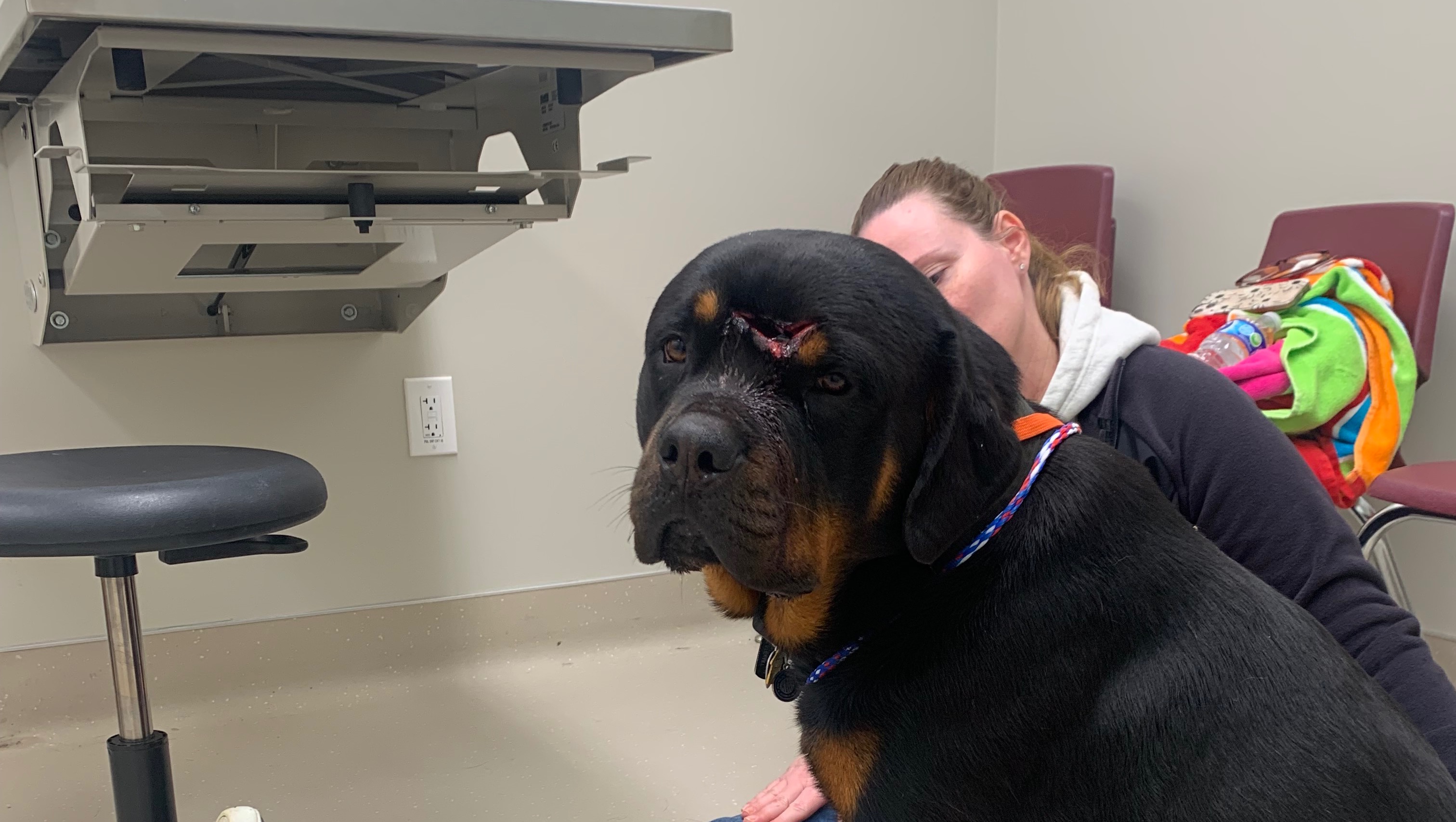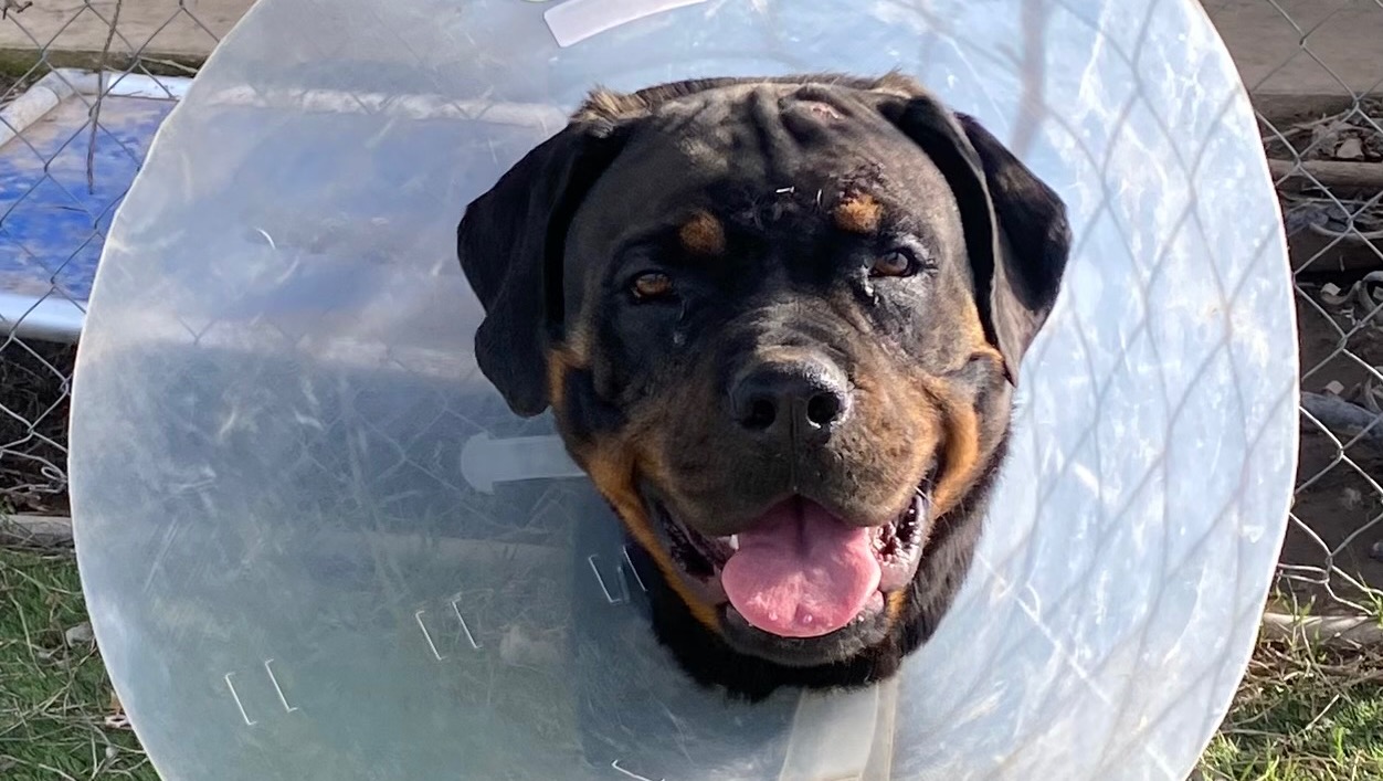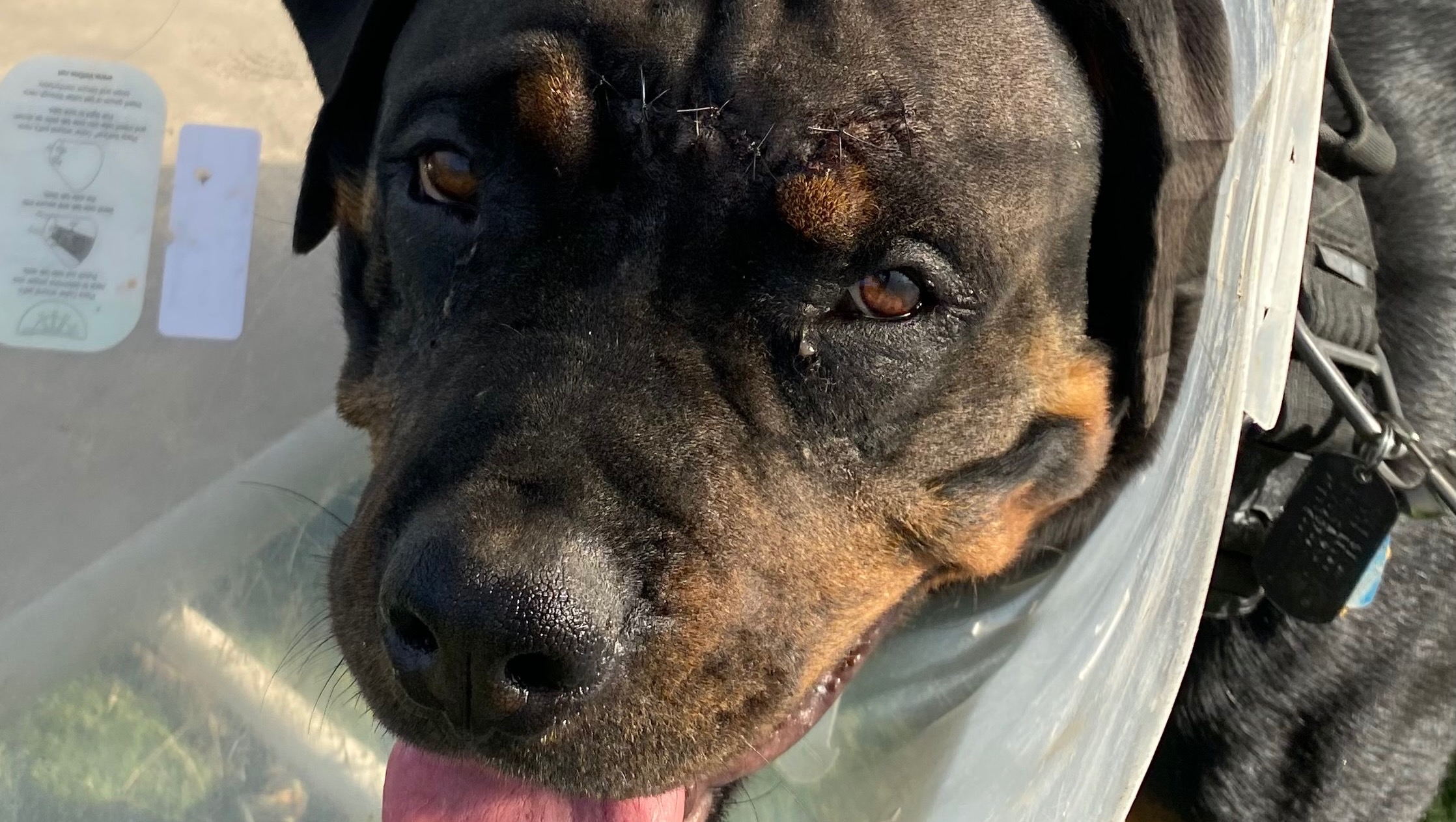I came home Tuesday night to find one of my puppies injured. Elvis my 13 month old Rottweiler was rushed to UC Davis trauma center where he is currently receiving treatment. UC Davis called this morning with an update…he’s doing well. Better than they expected. After his CT scan he went to surgery and they stitched him up and luckily his brain was not damaged or injured. The bones in his upper sinus cavity were completely crushed. Vets think someone hit him with something like a hammer…I think he ran into something in the yard as I cannot fathom someone doing that to my baby. However, since I was not home when it happened there’s no way to tell for sure. (I have installed cameras to keep an eye on the yard now.) They want to keep him in ICU for a couple more days to monitor him and his progress (make sure no neurological issues arise) but so far all good news. Elvis’ UC Davis hospital bill is at $10,000.00 so far and will likely increase as he may need additional surgeries. Thankfully I did have the company provided pet insurance on him but they only cover $7000.00 for the year leaving a good chunk to still be paid. I have set up a Go Fund Me to help pay for the additional cost. If you can help in any way it would be very much appreciated