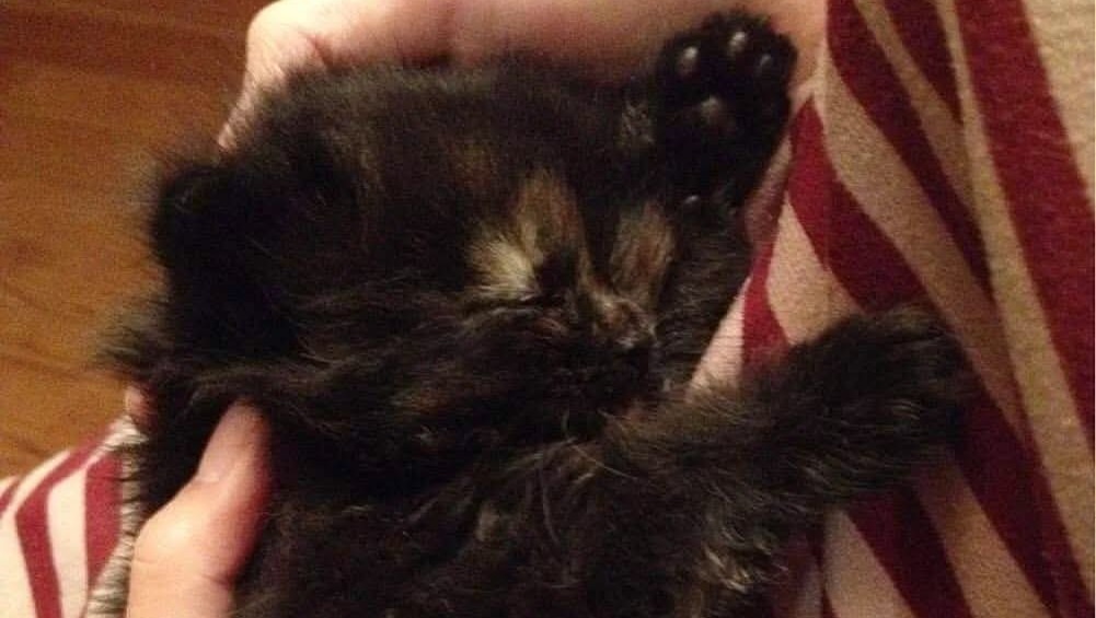 Then one day, the contractor who worked for my friend's parents found this little kitten on the street, all alone too. He gave this kitty to my friend's parents, who handed her over to me.