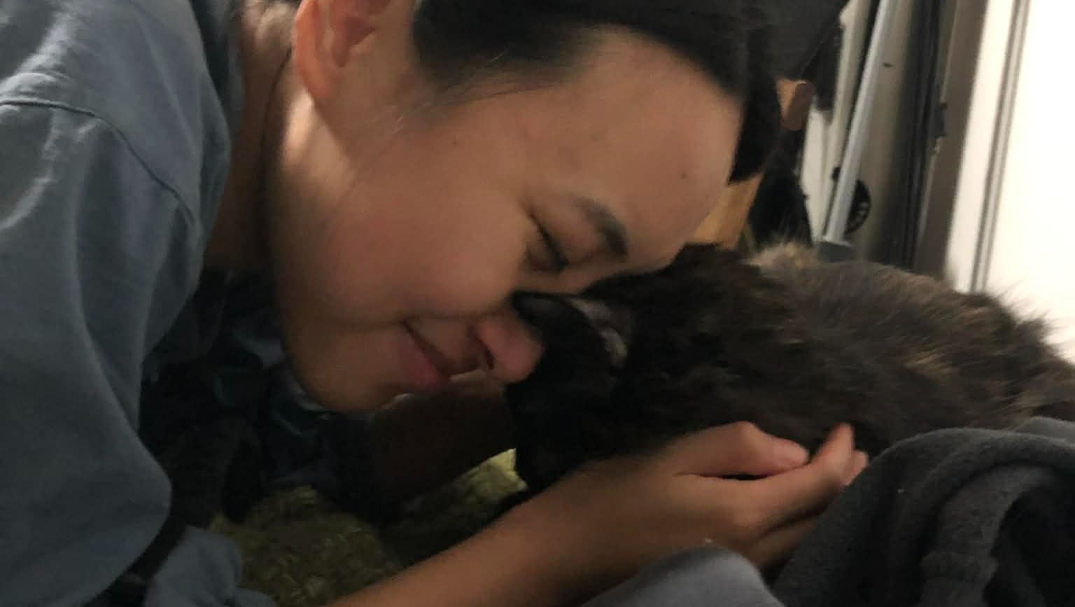 Rubs her head on me and knead the dough by me when I cry to comfort me.