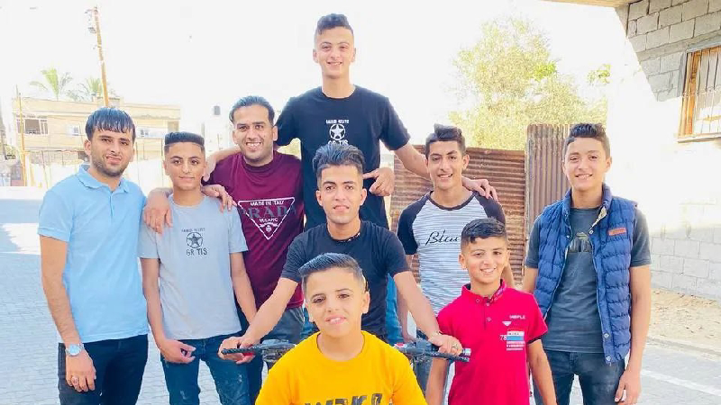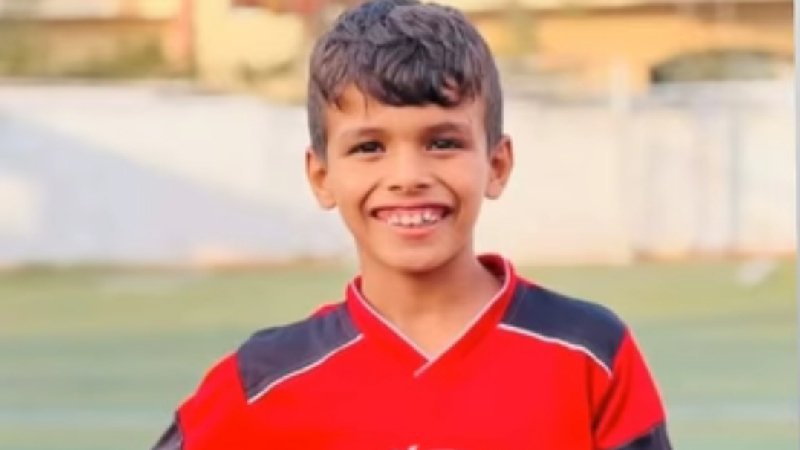 This is Yazan Al-Nahhal, my cousin, who was martyred in the massacre. He was 11 years old. He loved playing football. He was a very good child. I can't believe I lost them.