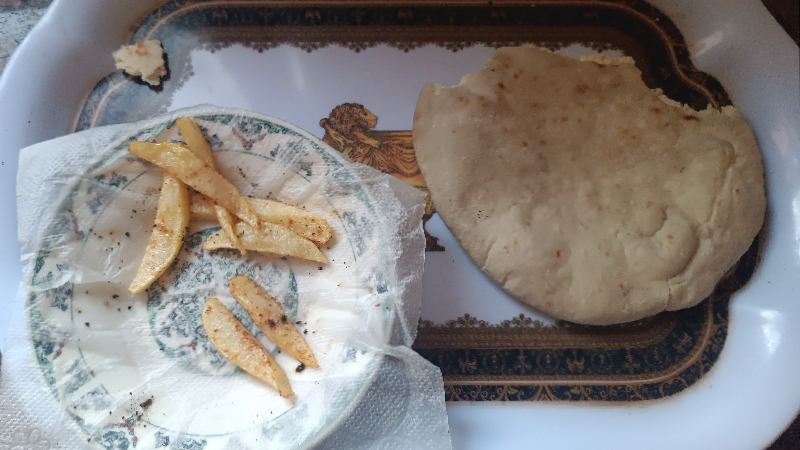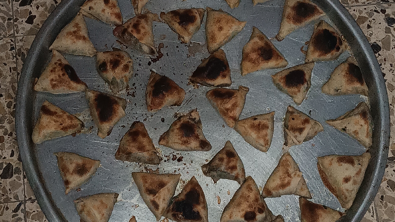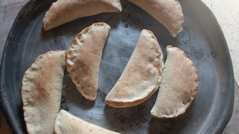 These foods are a big dream for us to eat, even though they are very simple, consisting of bread and some herbs inside them, such as thyme and spinach, because nothing is available in the markets, and if it is available, it will be at a very high price.